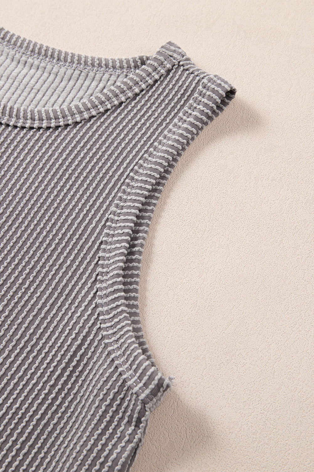Medium Grey Corded Sleeveless Top and Pocketed Shorts Set