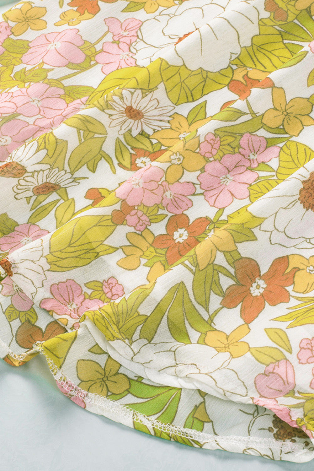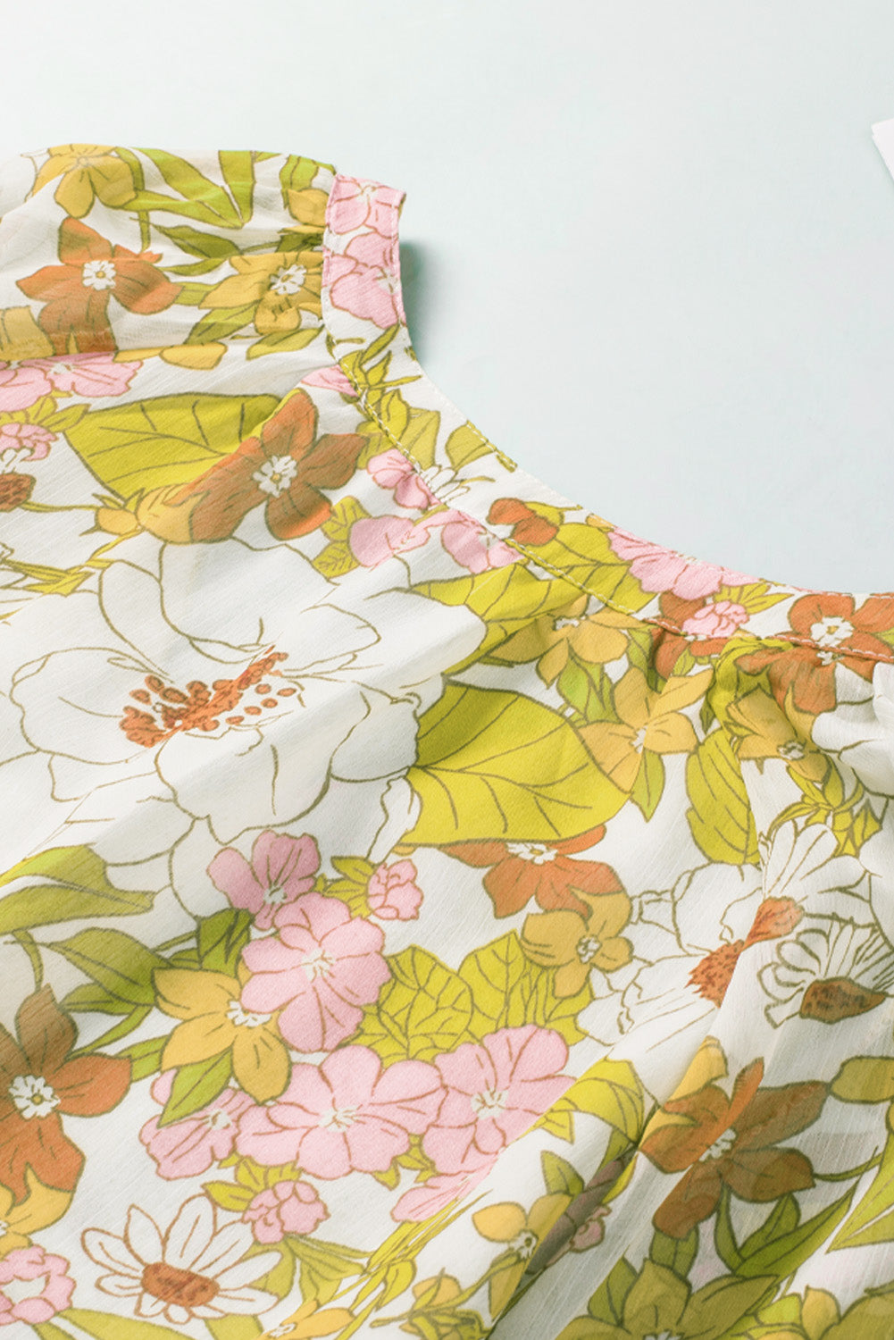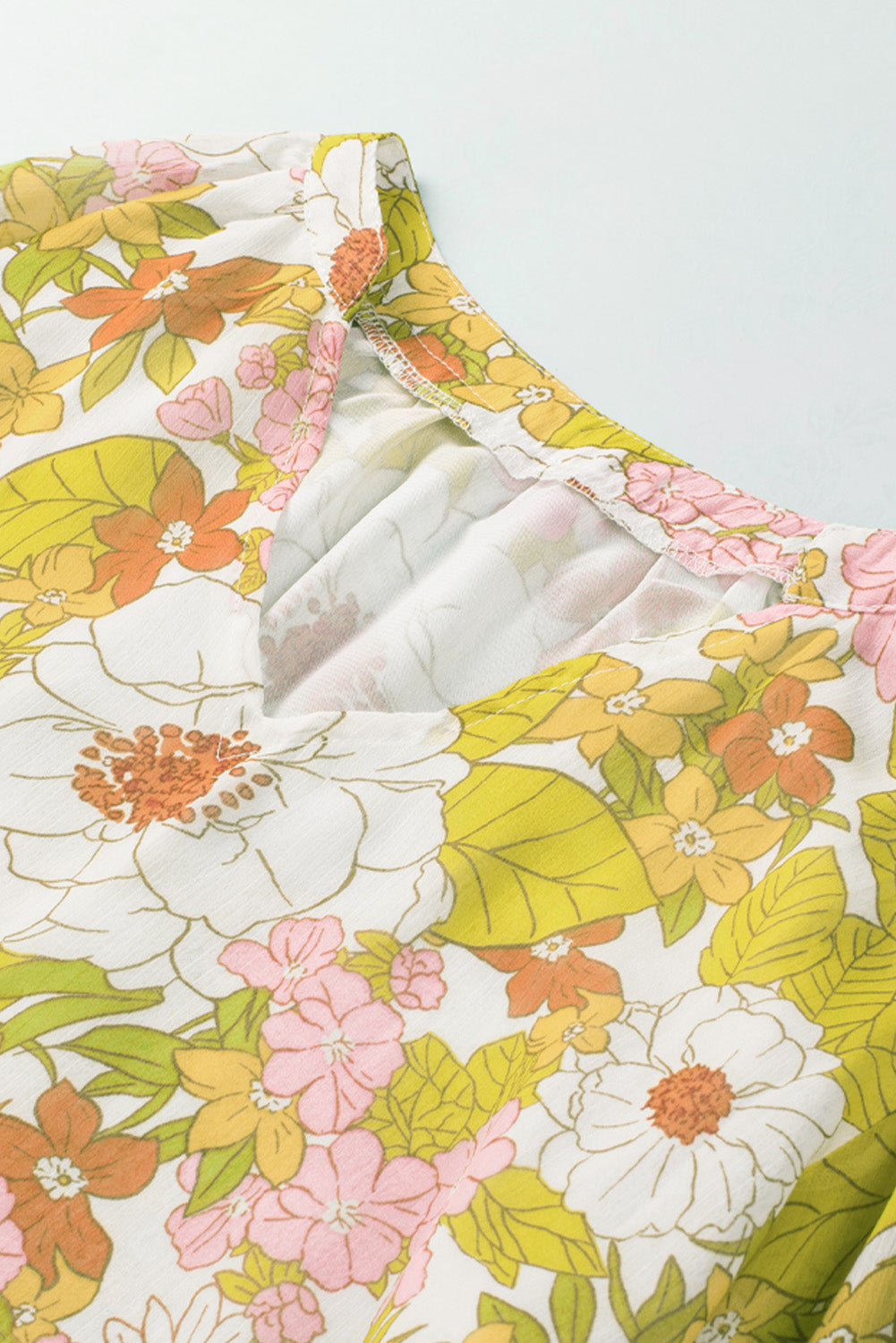 Multicolor Floral Print V Neck Long Puff Sleeve Top