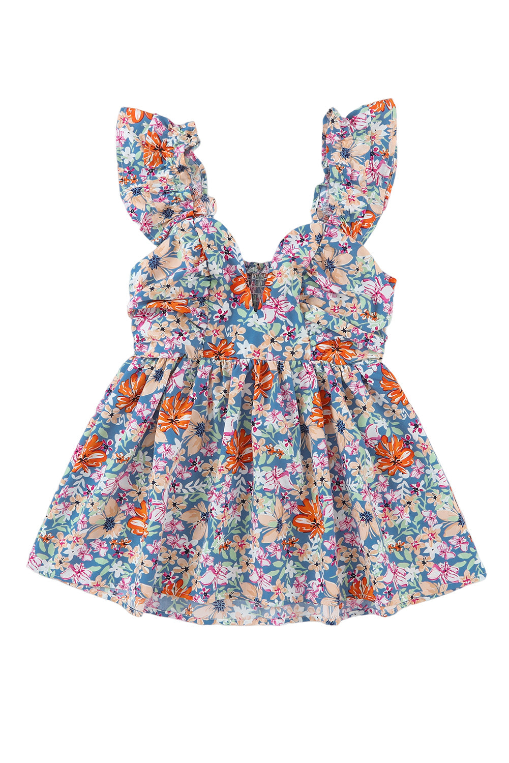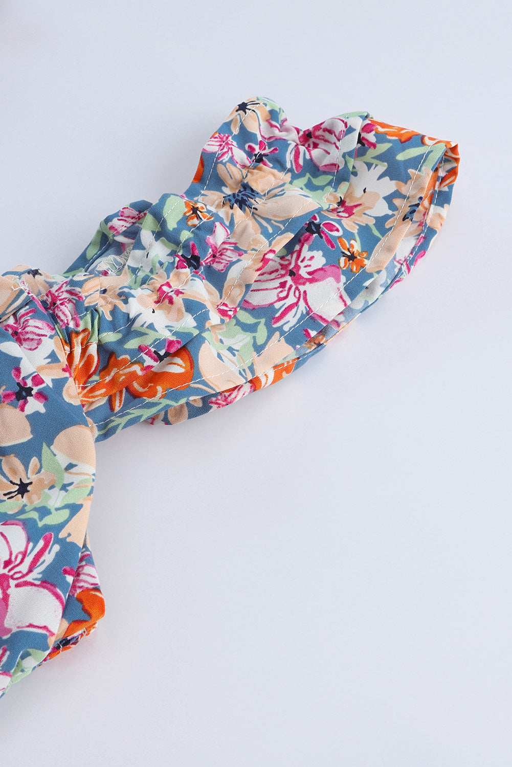 Multicolor Floral Ruffle Straps Sweetheart Peplum Tank