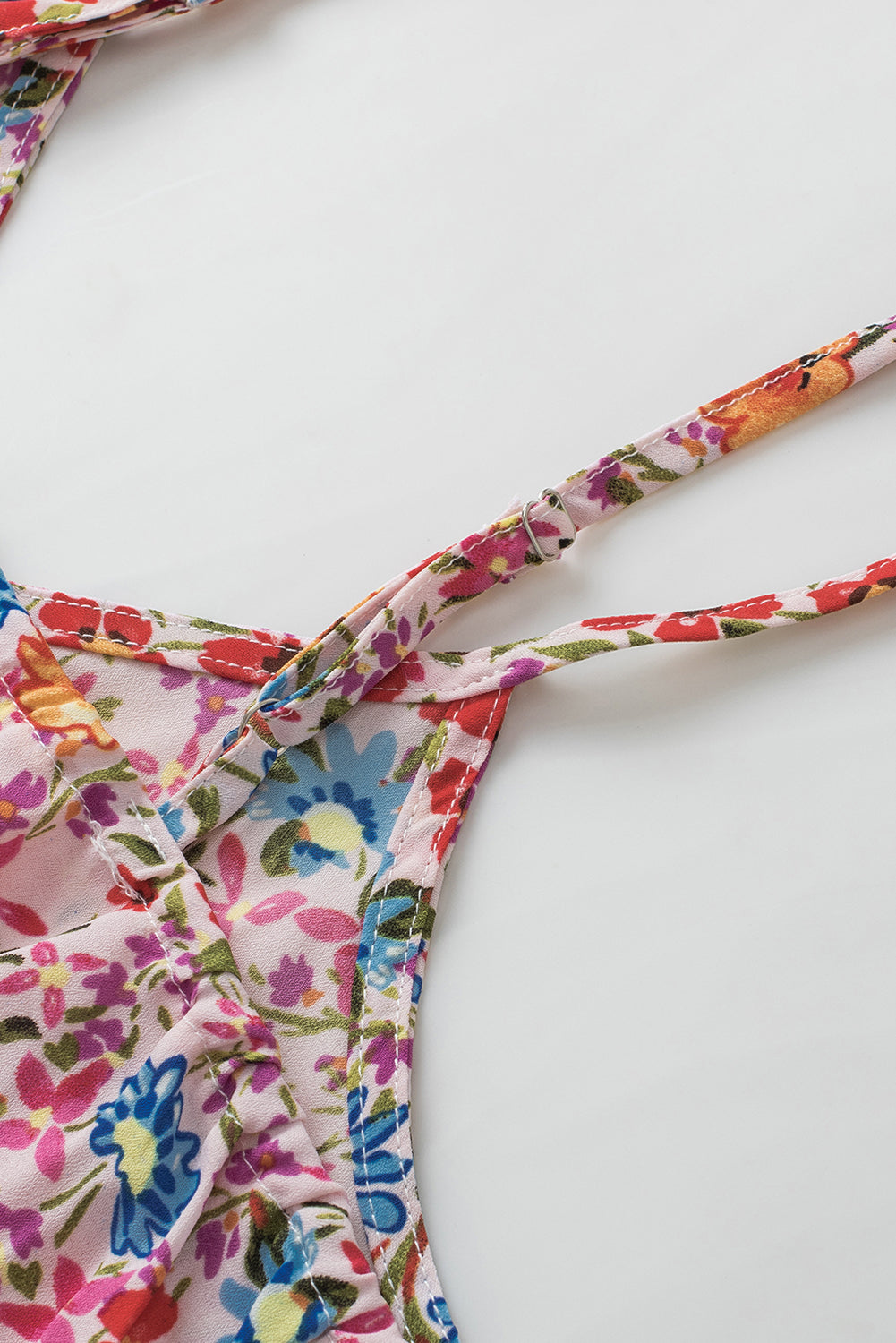 Multicolor Spaghetti Straps Knot Front Floral Tank Top