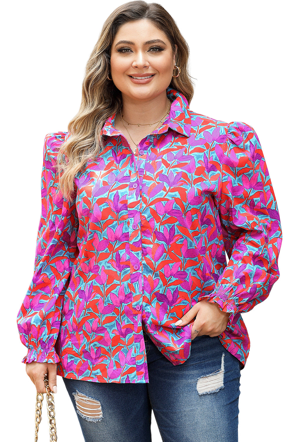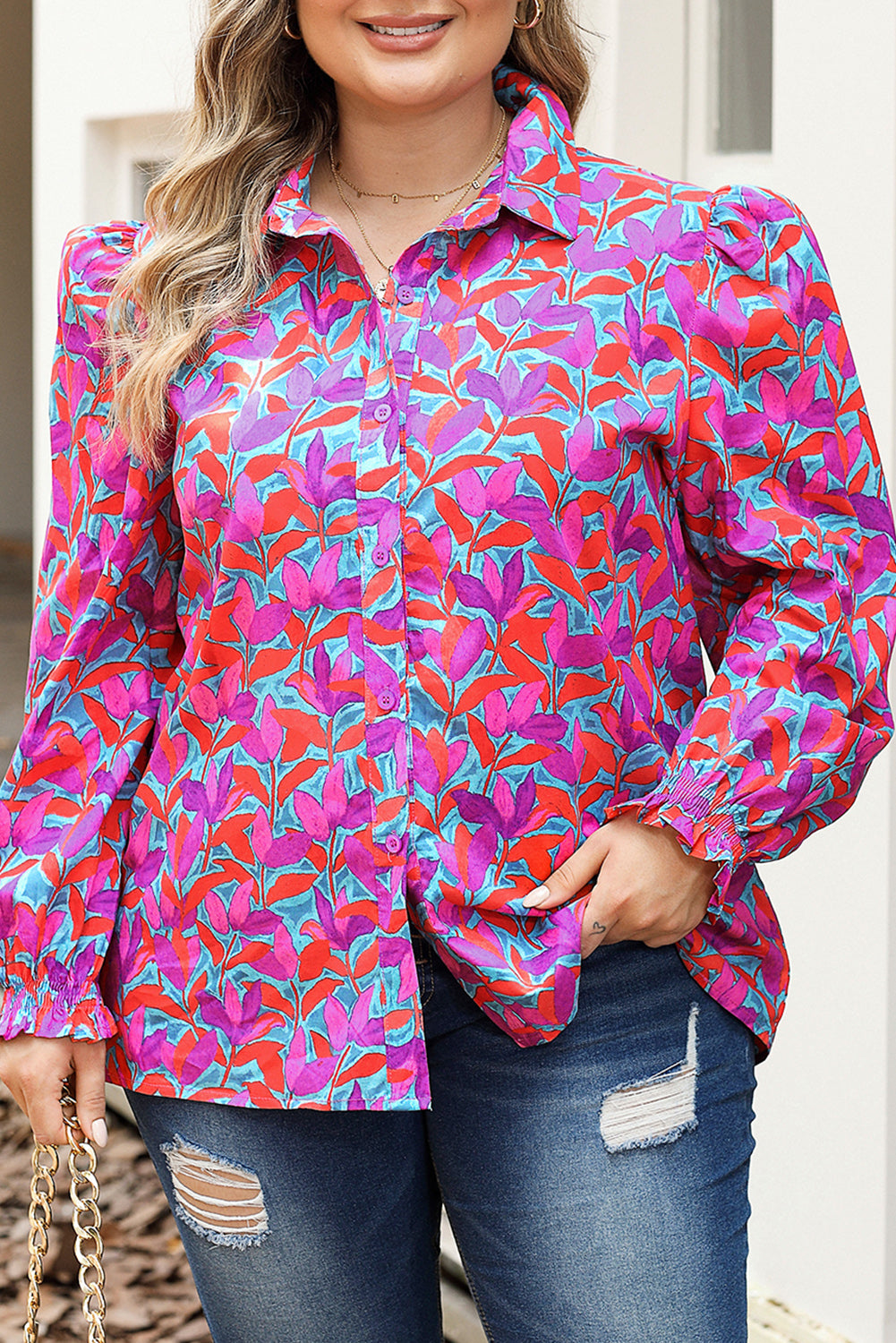 Multicolour Plus Size Floral Print Ruffled Puff Sleeve Shirt