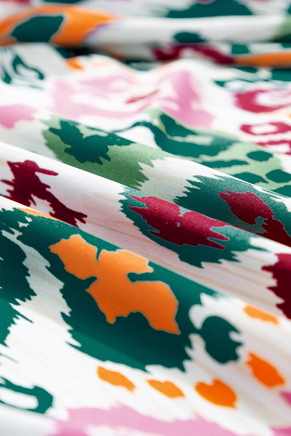 Multicolour Western Print High Neck Bat Sleeve Blouse