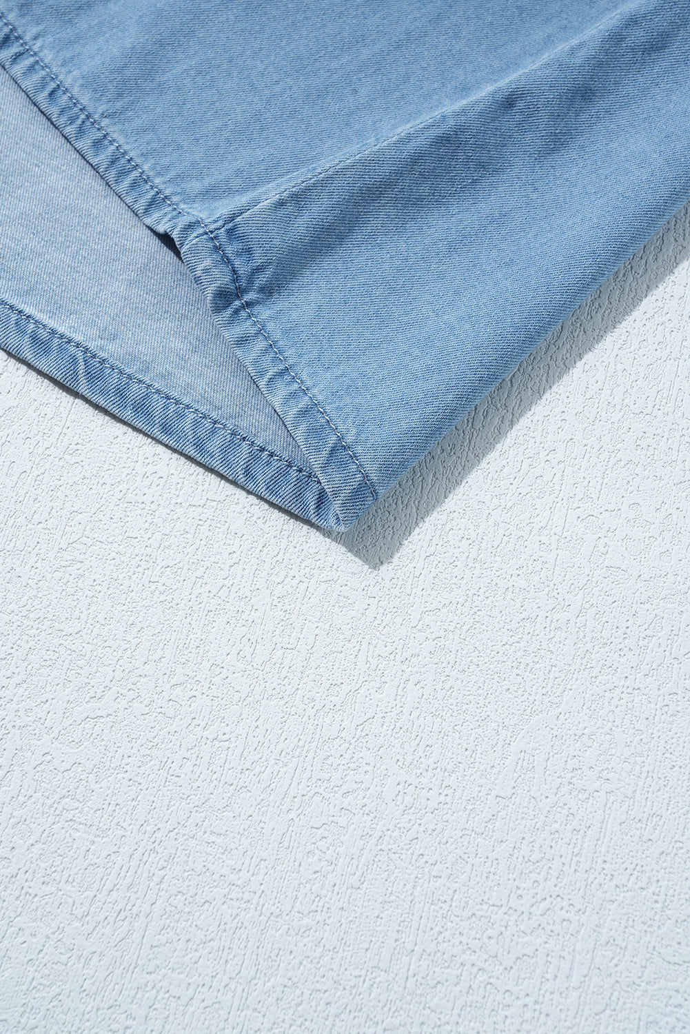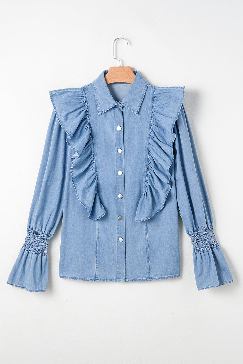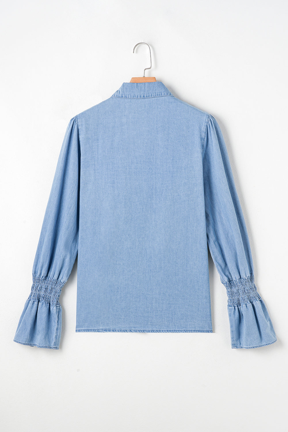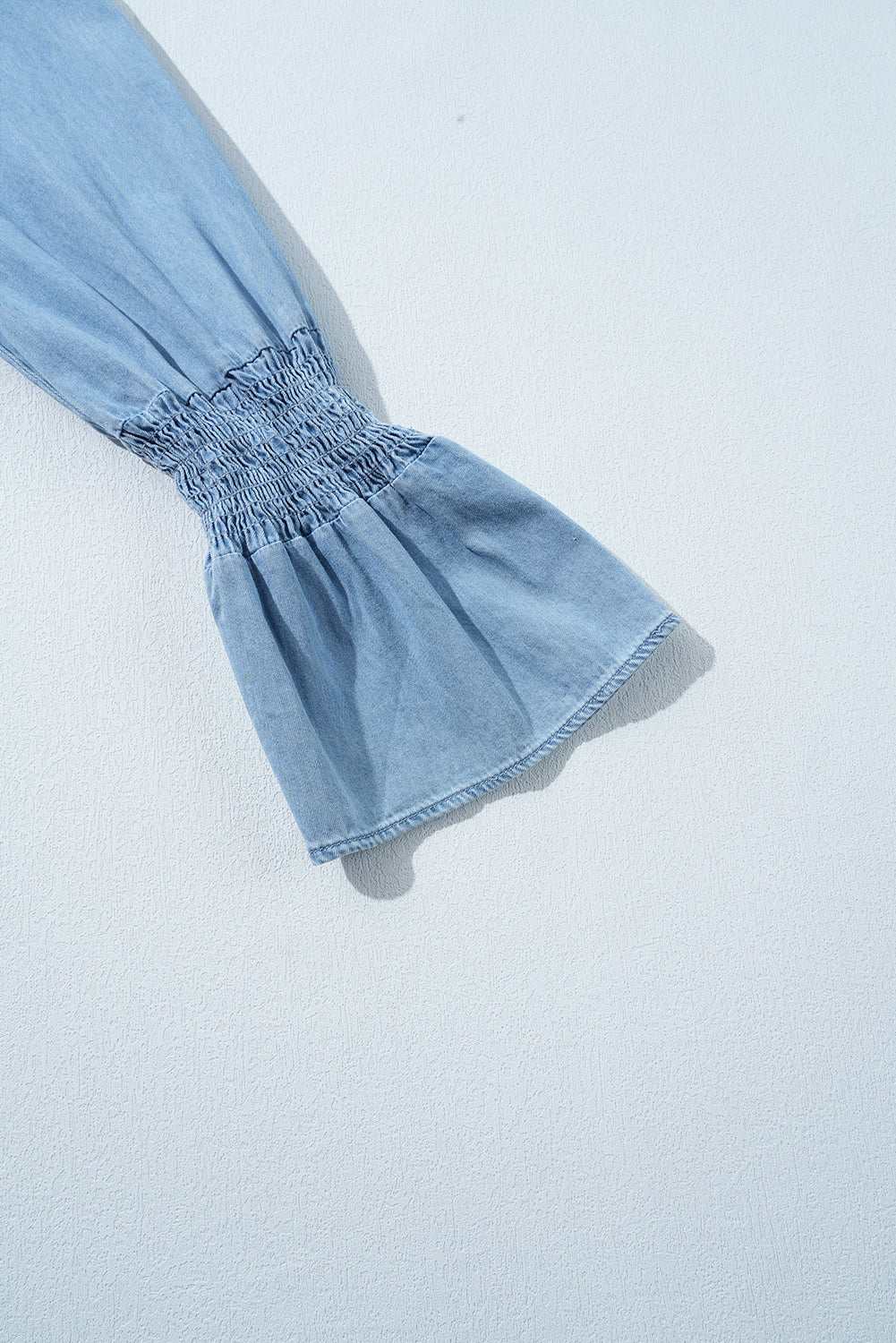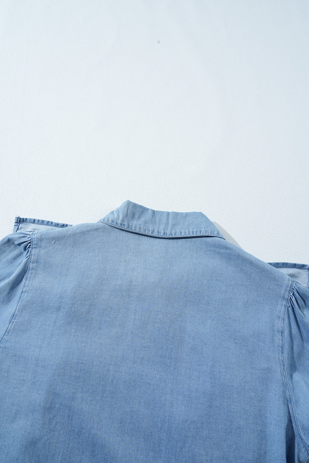 Myosotis Ruffled Shirred Cuffs Button up Chambray Shirt