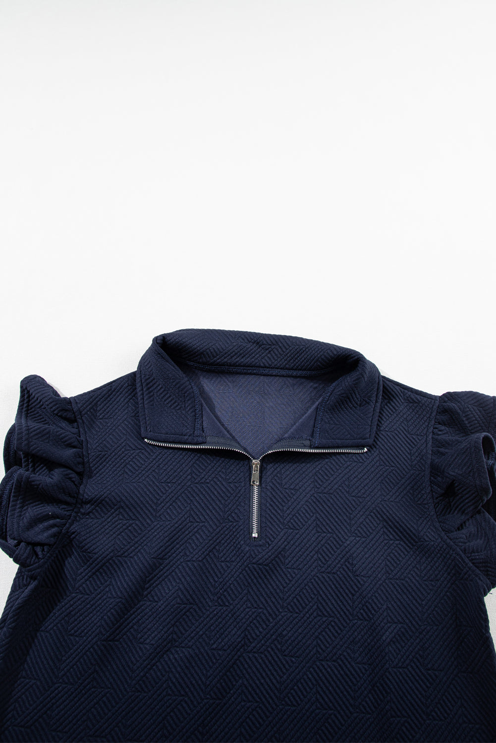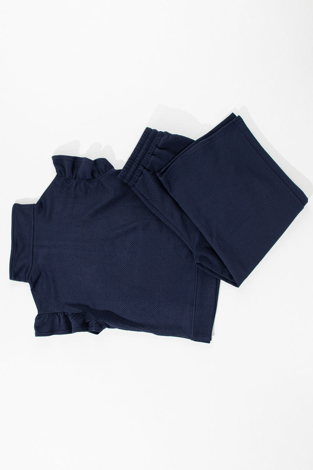 Navy Blue Textured Flutter Sleeve Top Wide Leg Pants Set