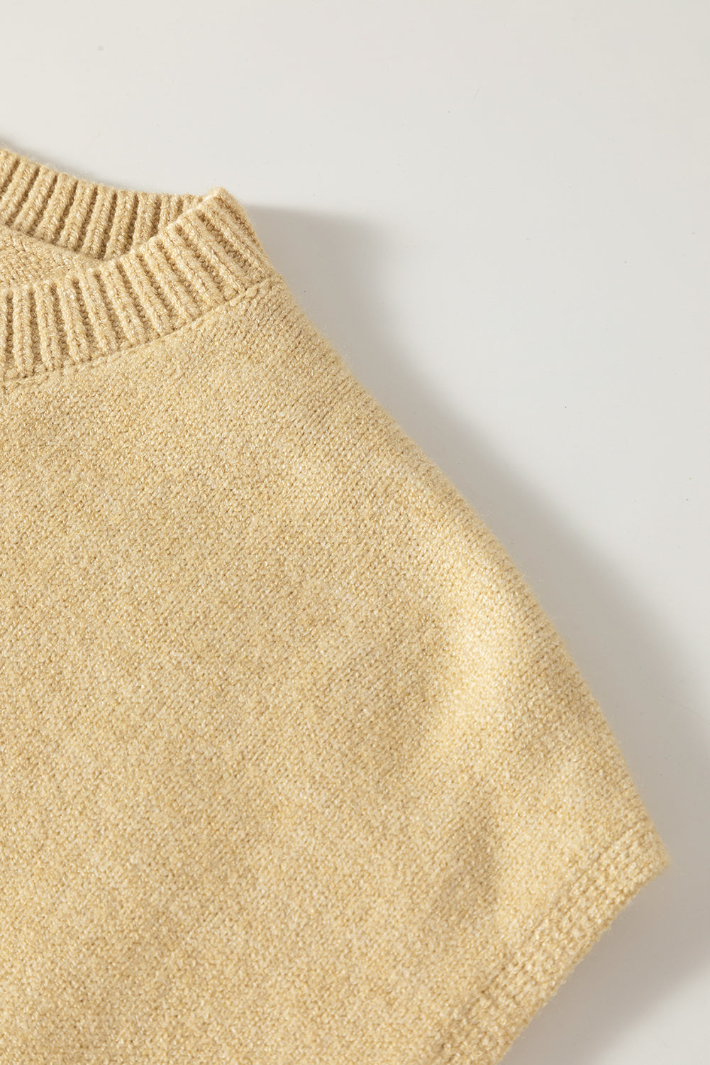 Parchment Solid Color Ribbed Trim Short Sleeve Sweater