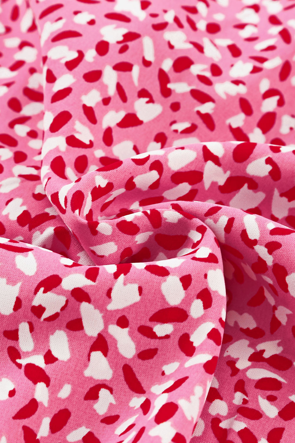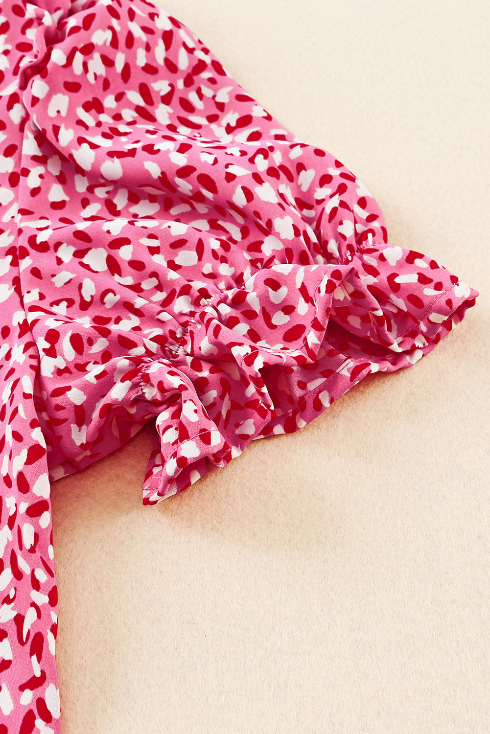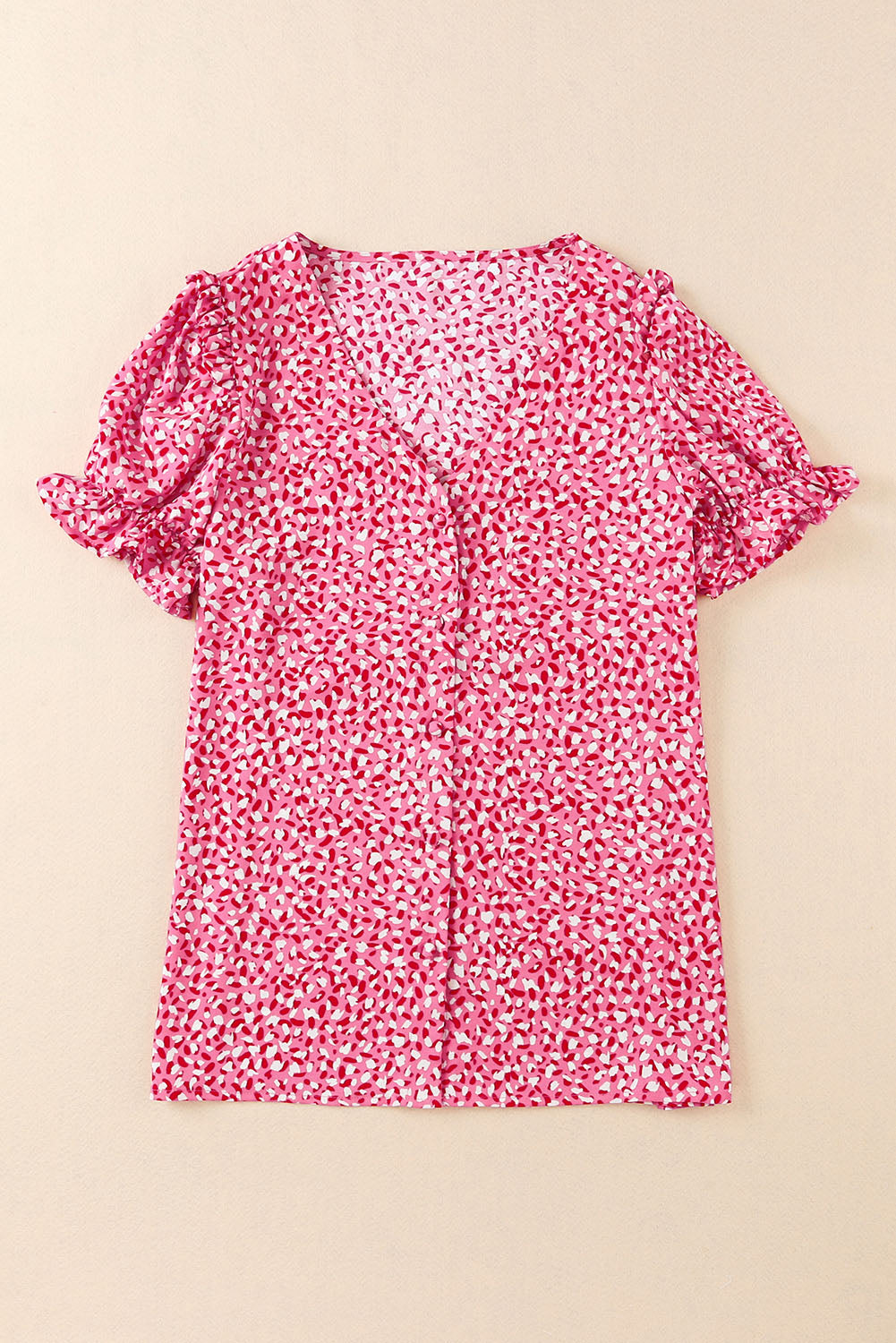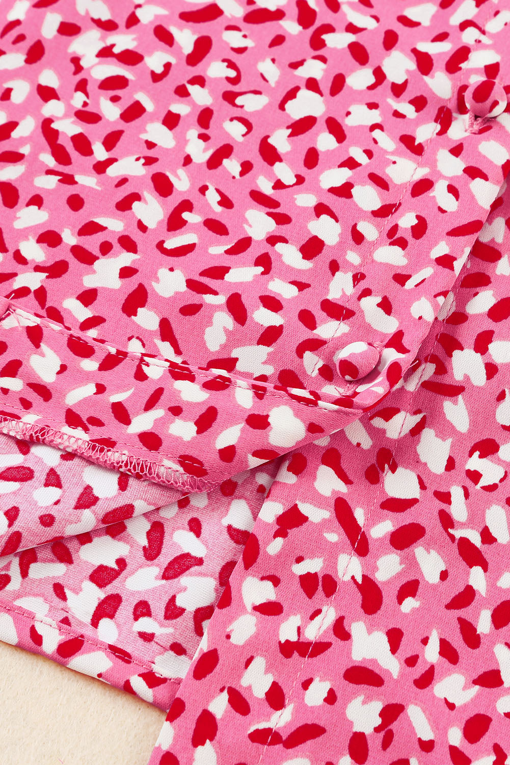 Pink Abstract Print Buttoned Ruffle Sleeve Shirt