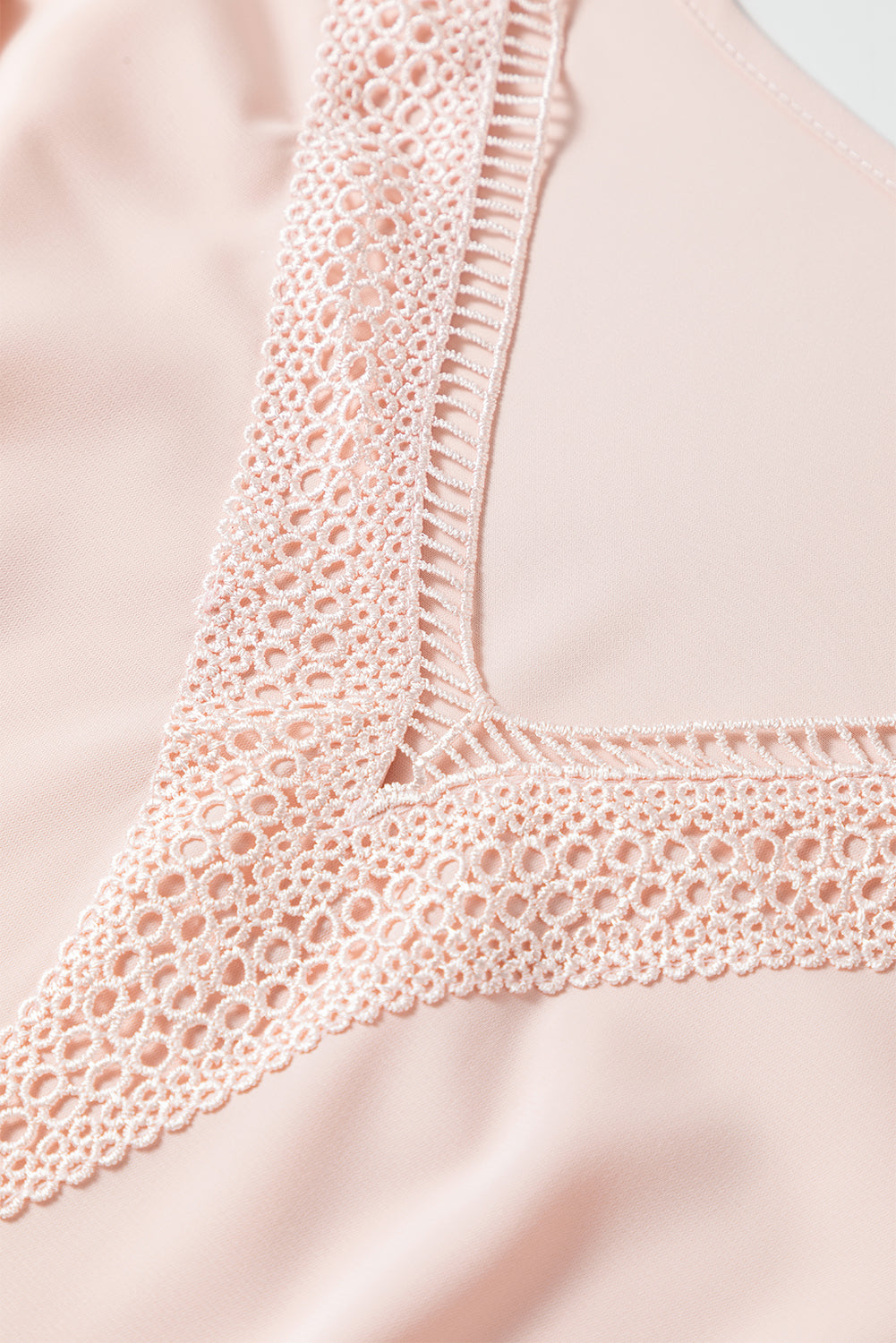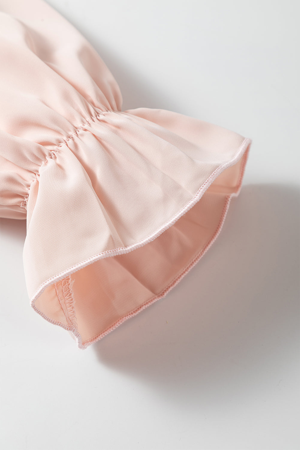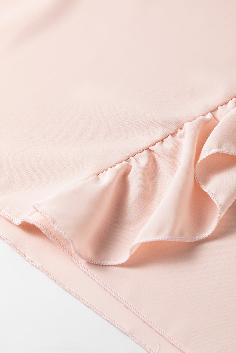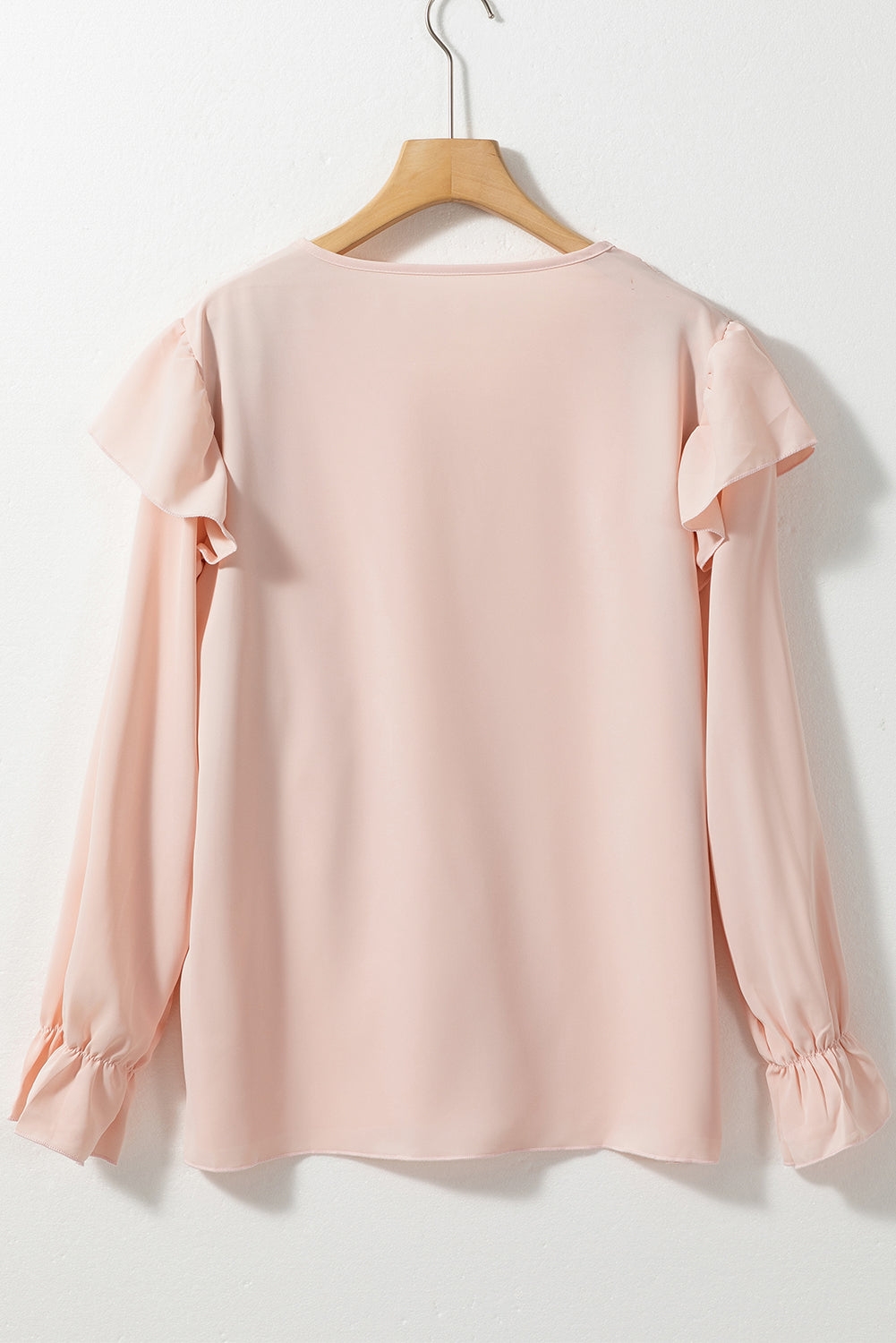 Pink Crochet V Neck Flounce Sleeve Ruffled Blouse