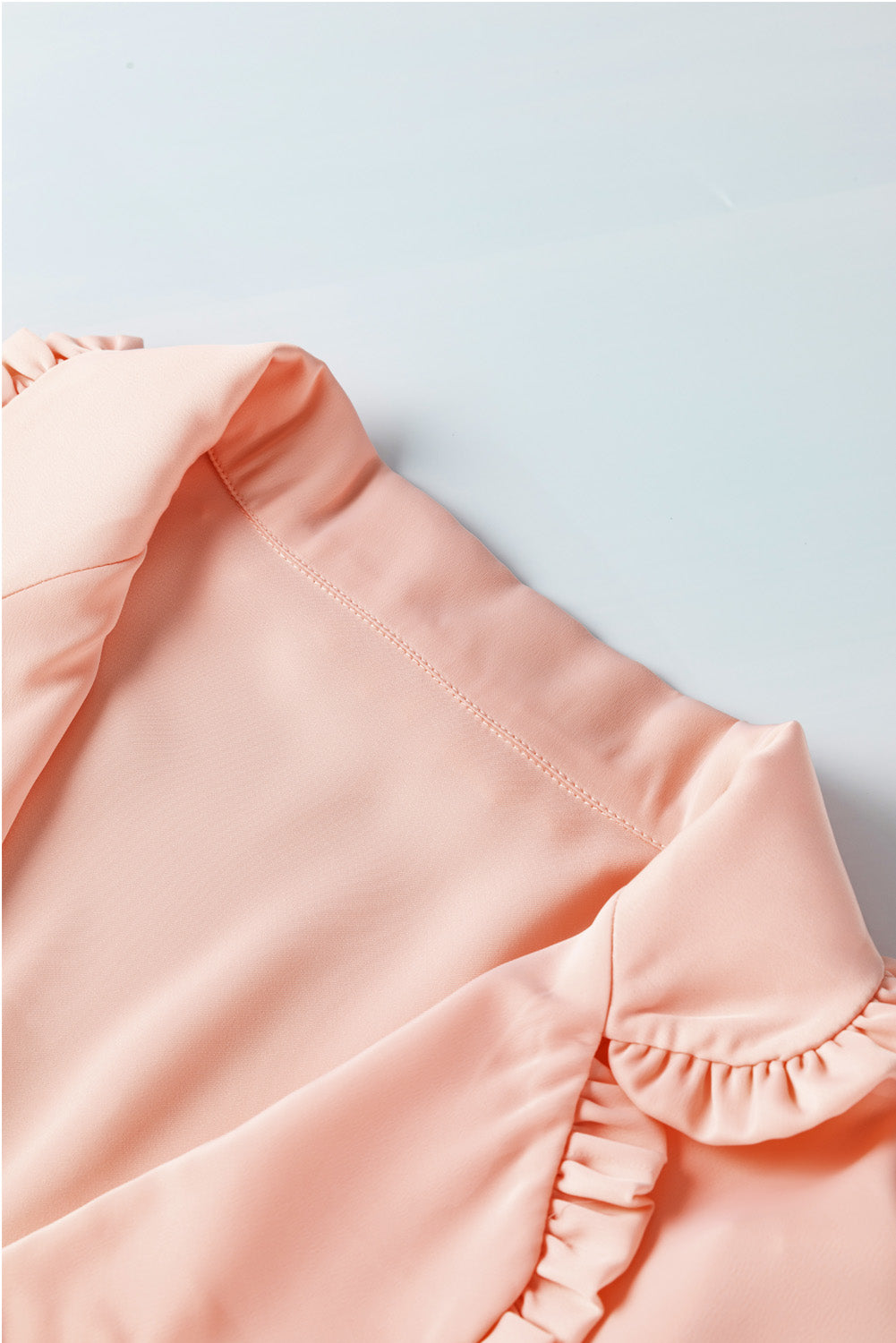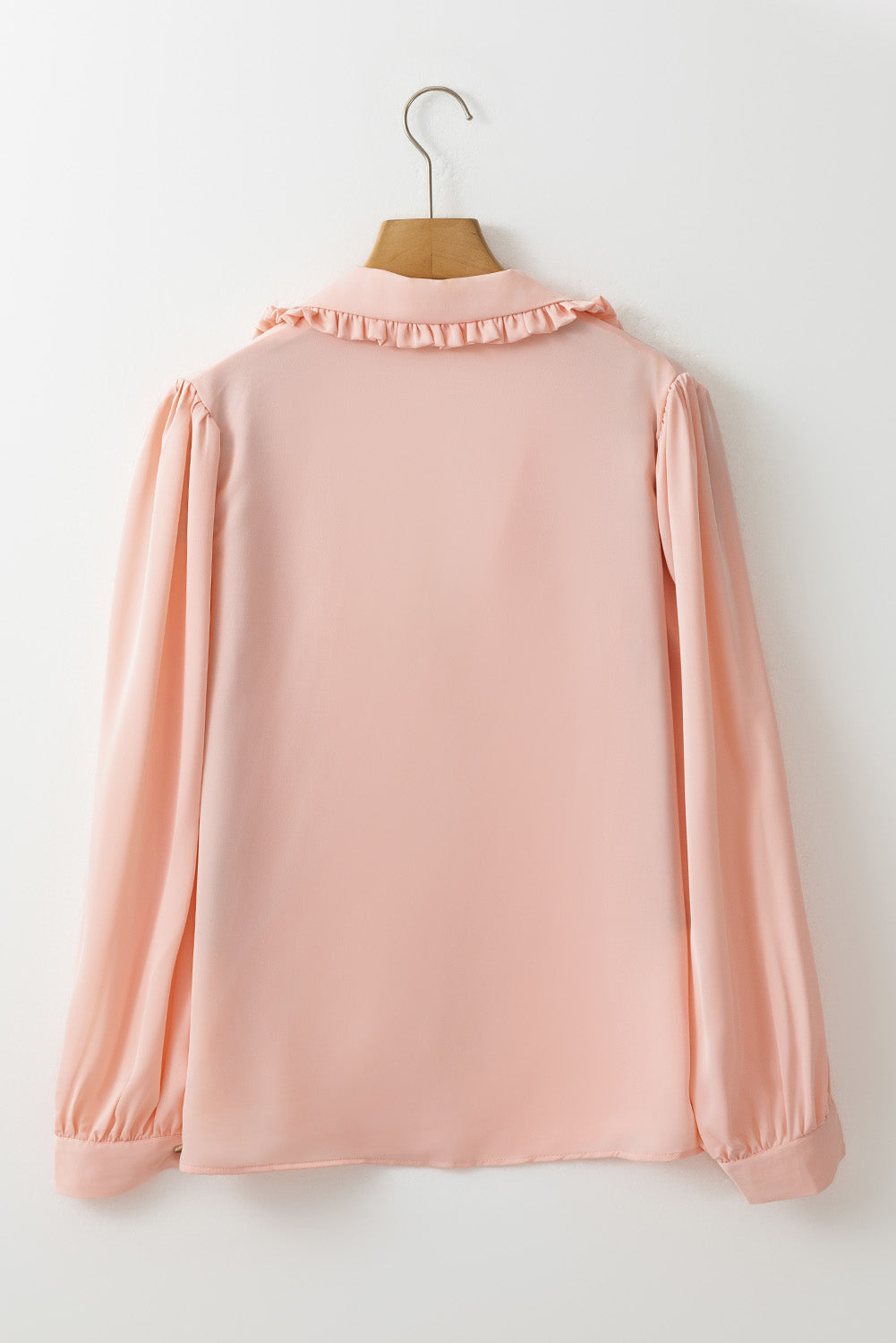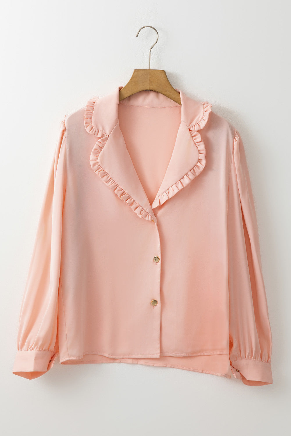 Pink Frilled Lapel Collar Button-Up Puff Sleeve Shirt