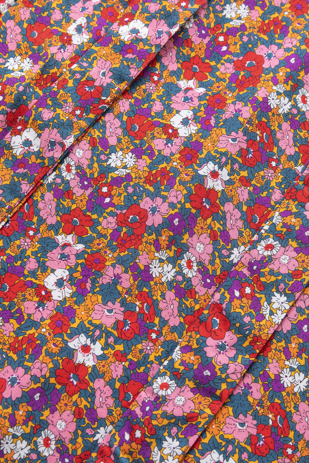 Purple Floral Print Knotted High Neck Puff Sleeve Blouse