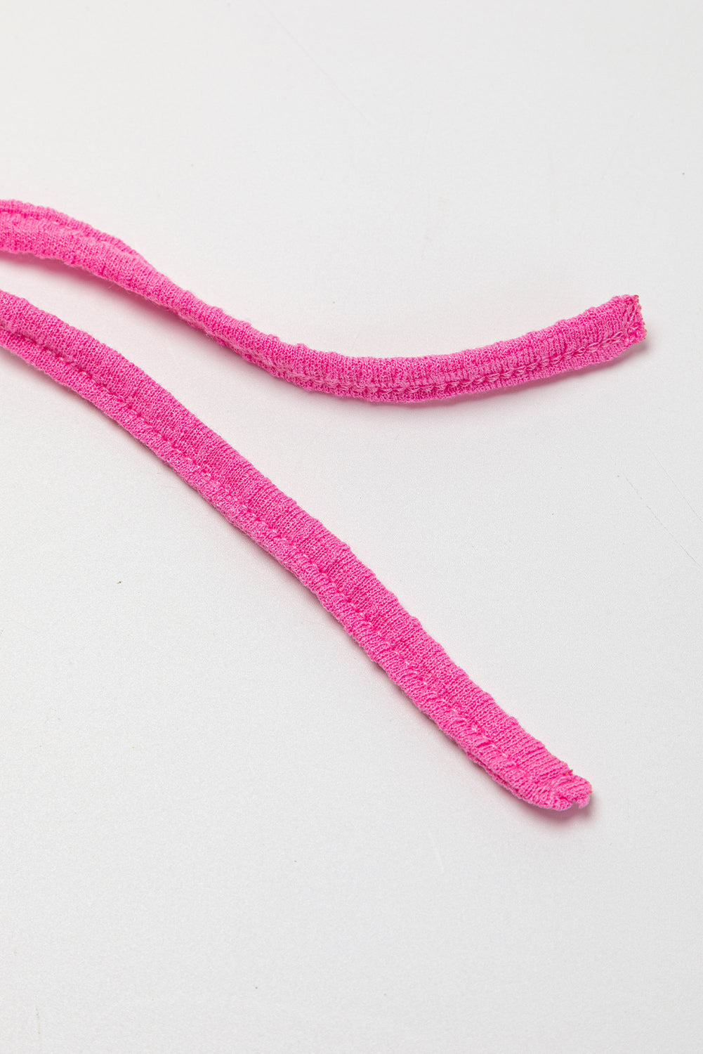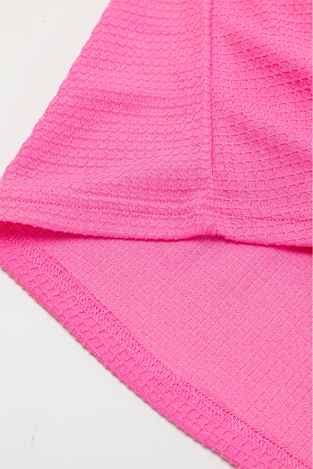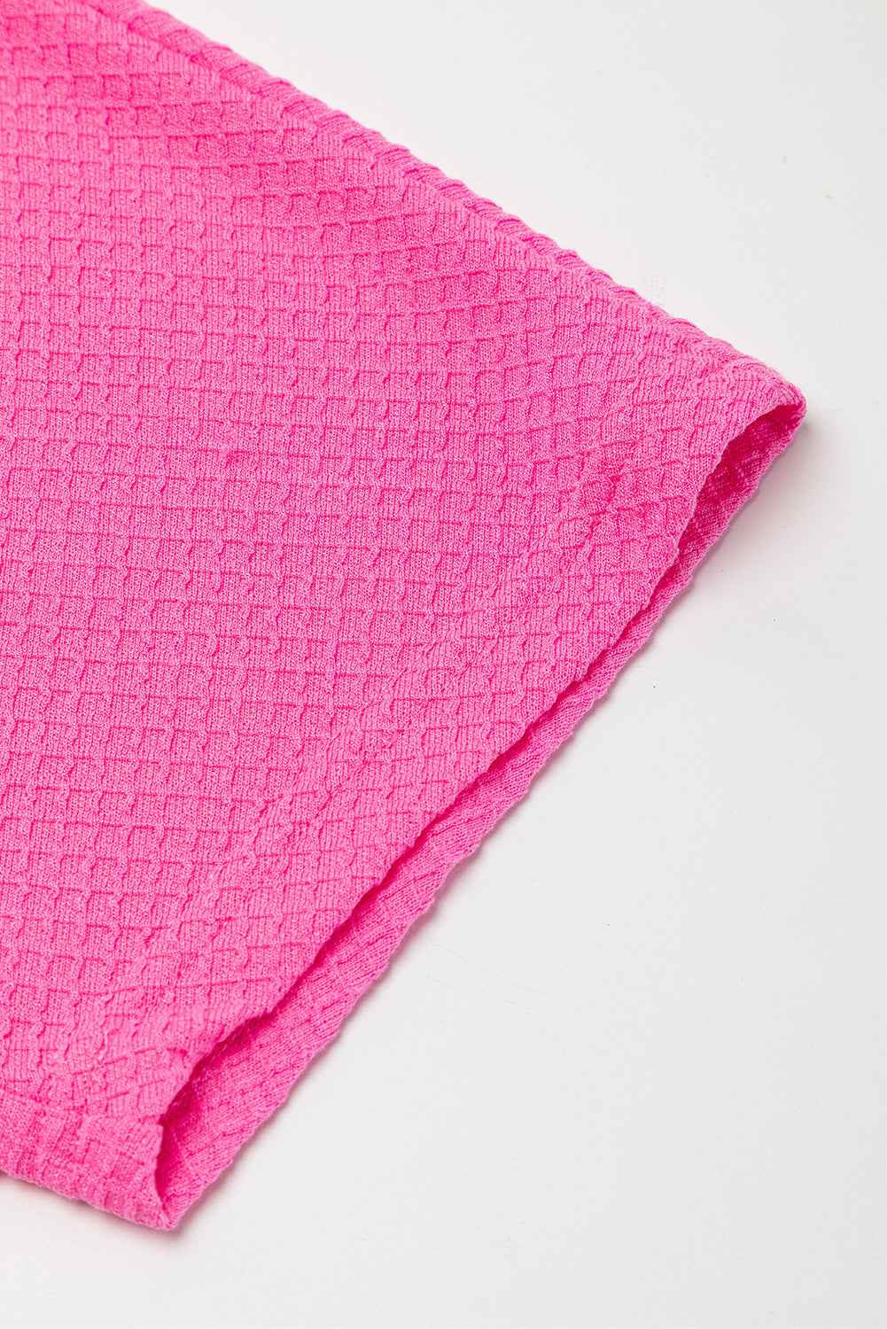 Rose Red Casual Textured Tee and Drawstring Shorts Set