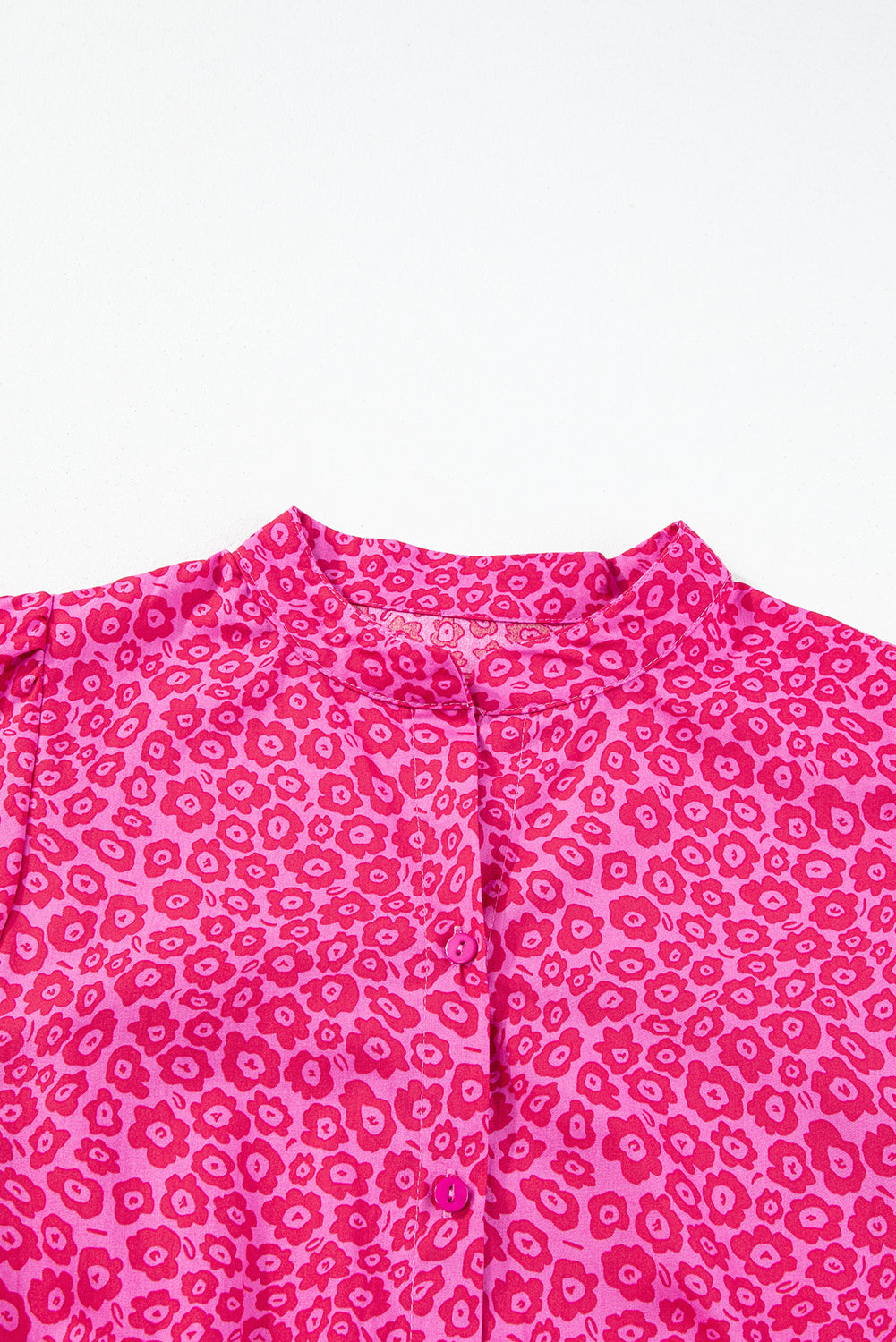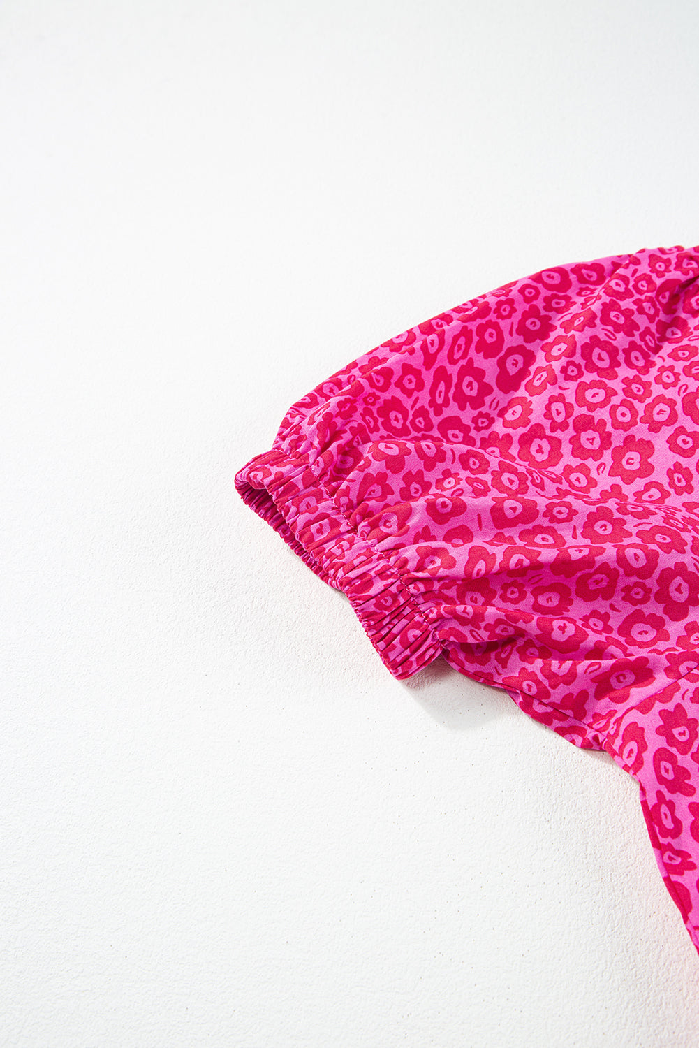 Rose Red Flower Mock Neck Puff Sleeve Tiered Maxi Dress