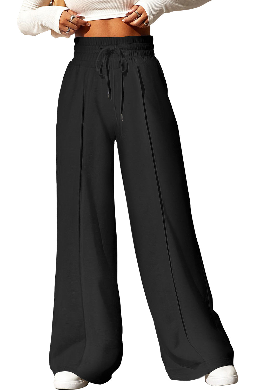 Rose Red Terry Knit Drawstring Smocked Waist Wide Leg Sweatpants