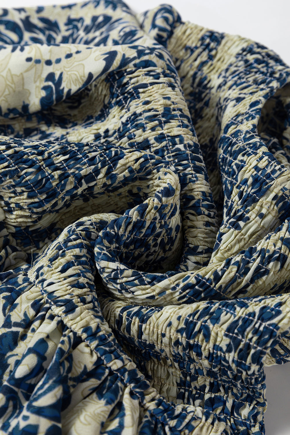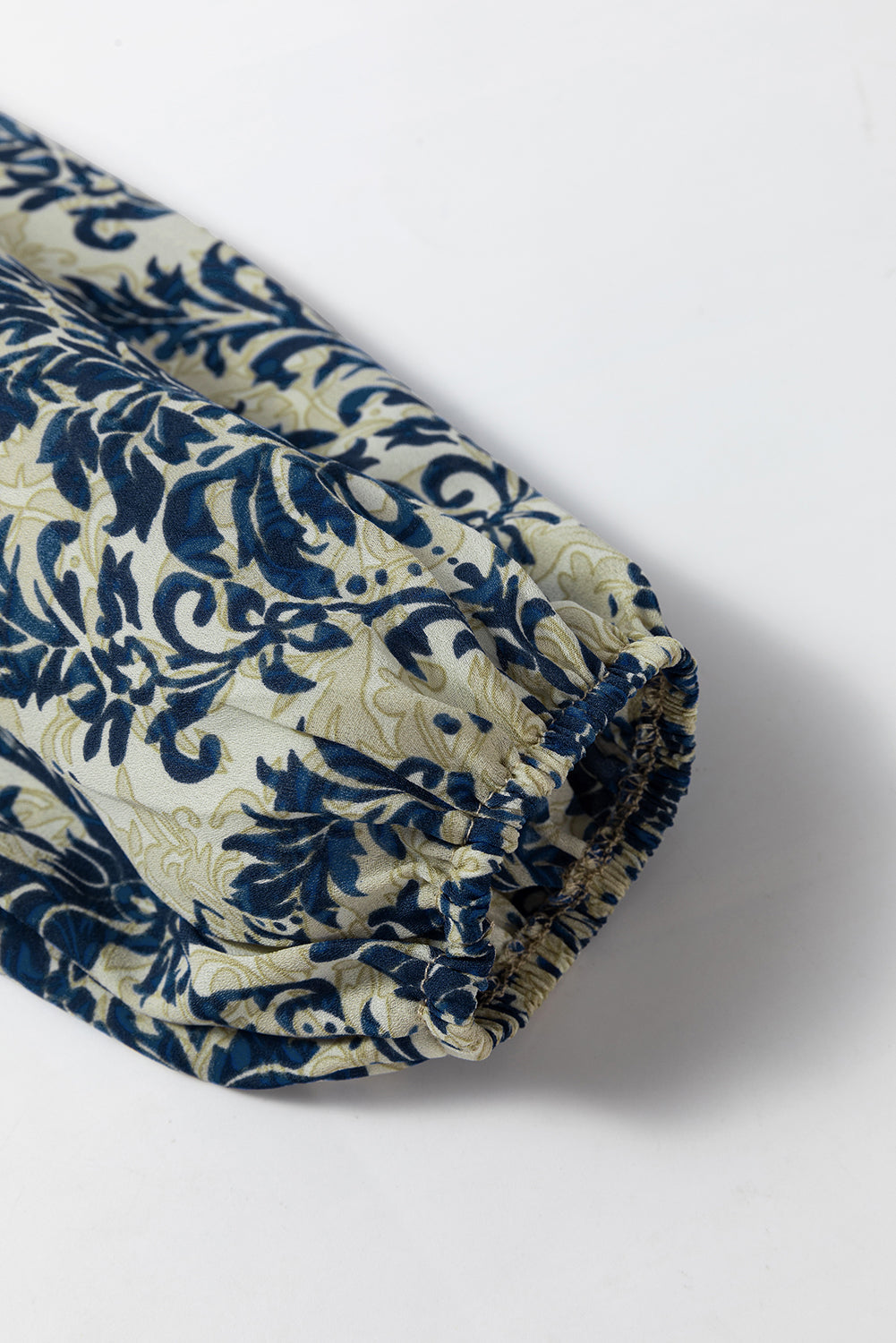 Sky Blue Boho Printed Balloon Sleeve Smocked Peplum Blouse