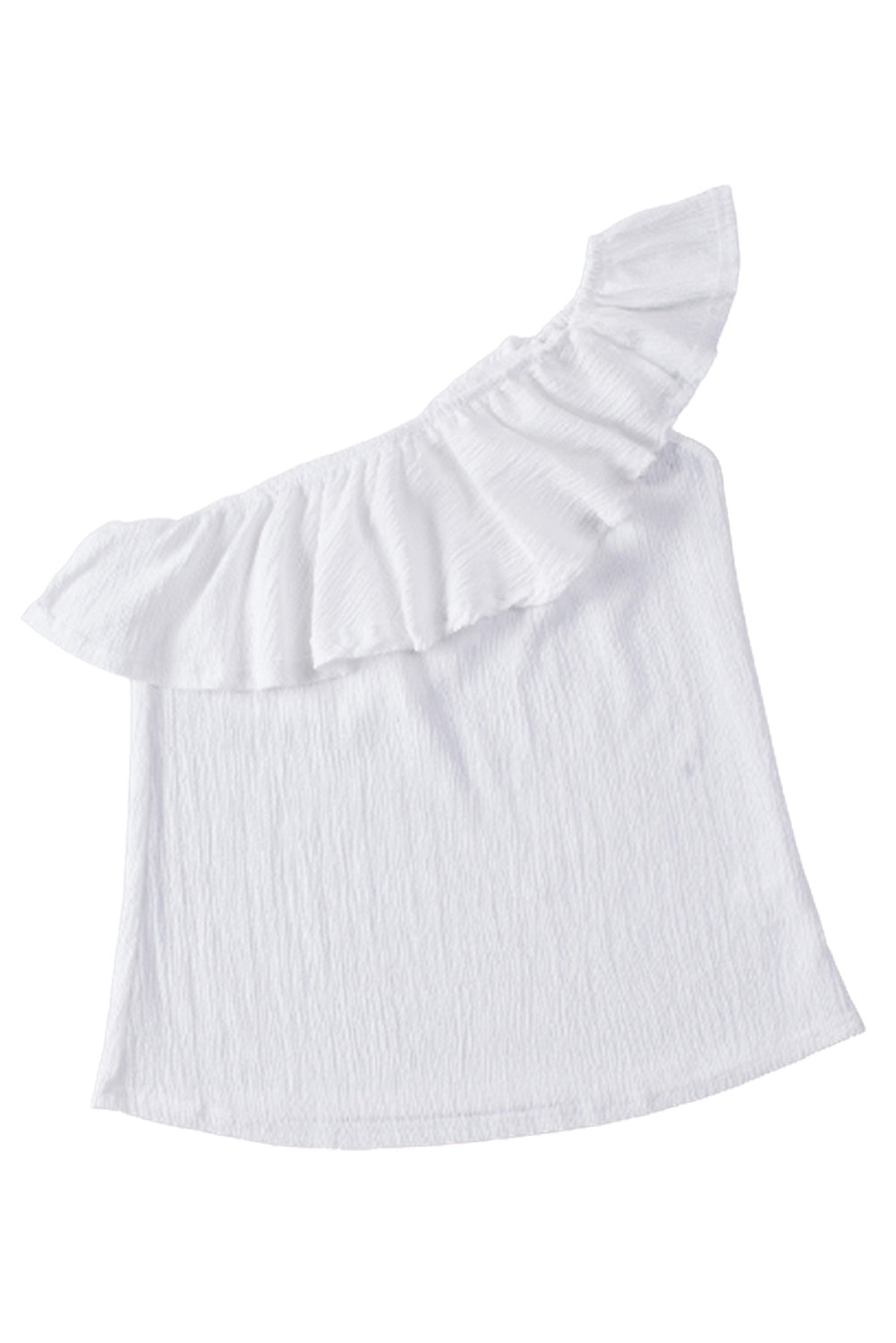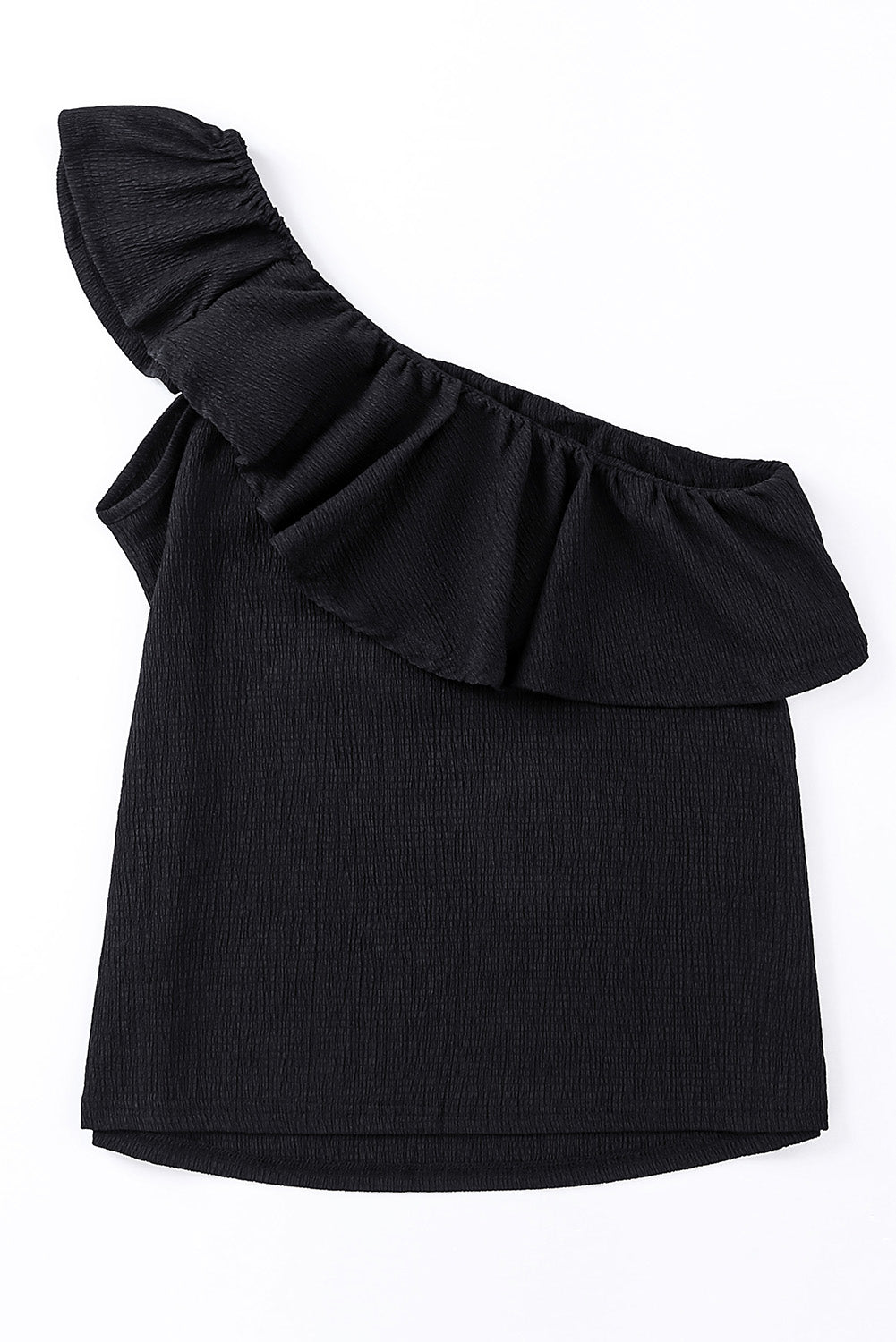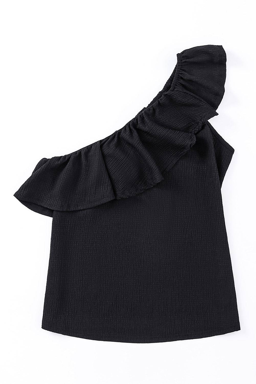 Sky Blue Ruffle One Shoulder Crinkle Tank