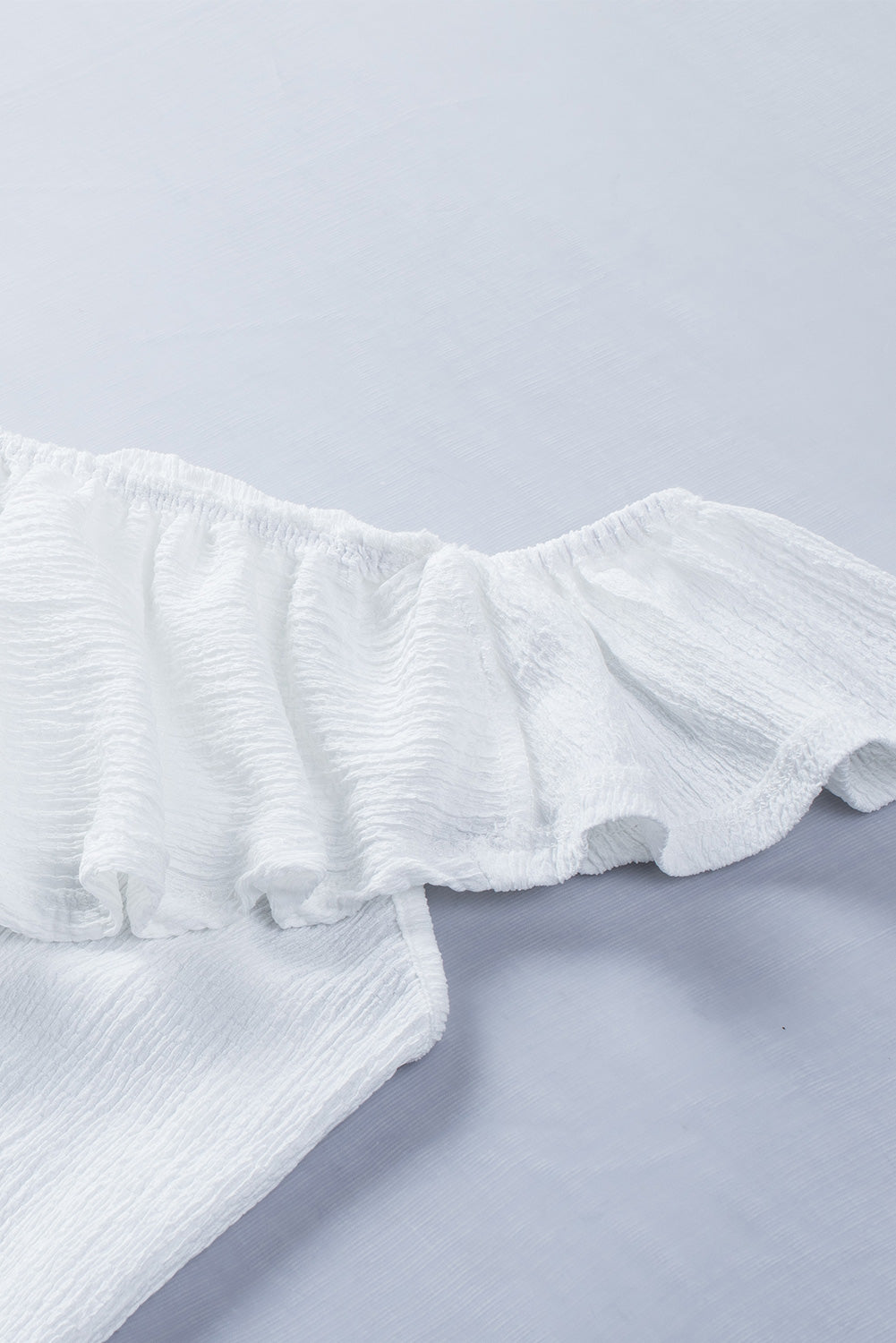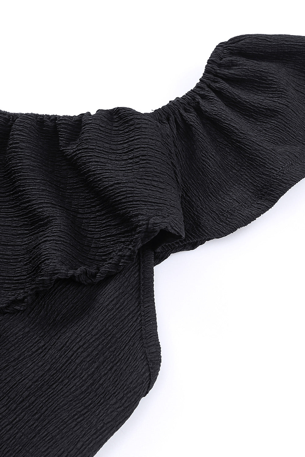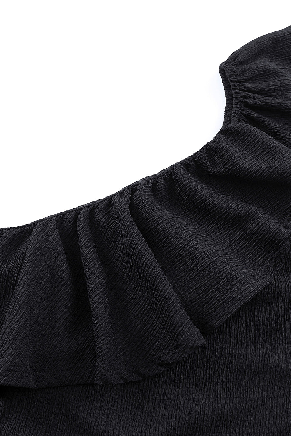 Sky Blue Ruffle One Shoulder Crinkle Tank