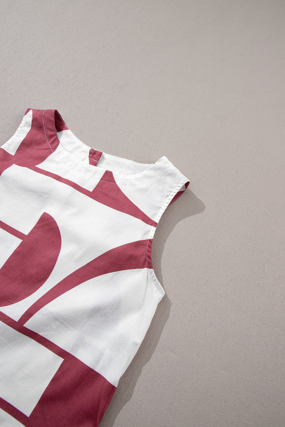 White Abstract Printed Button Back Vest and Wide Leg Pants Set