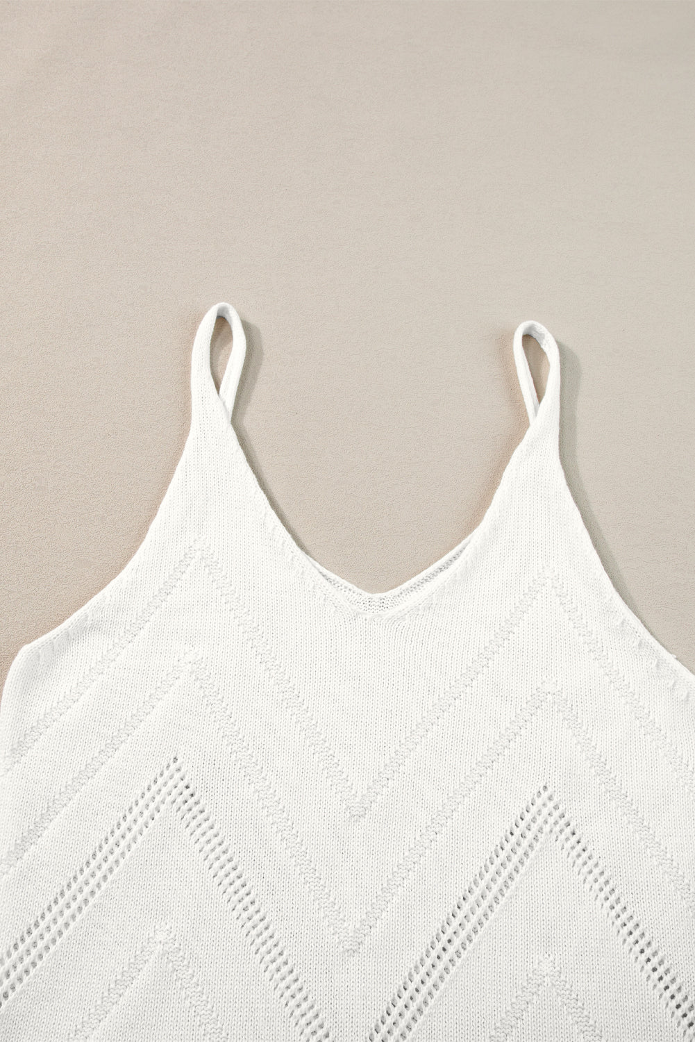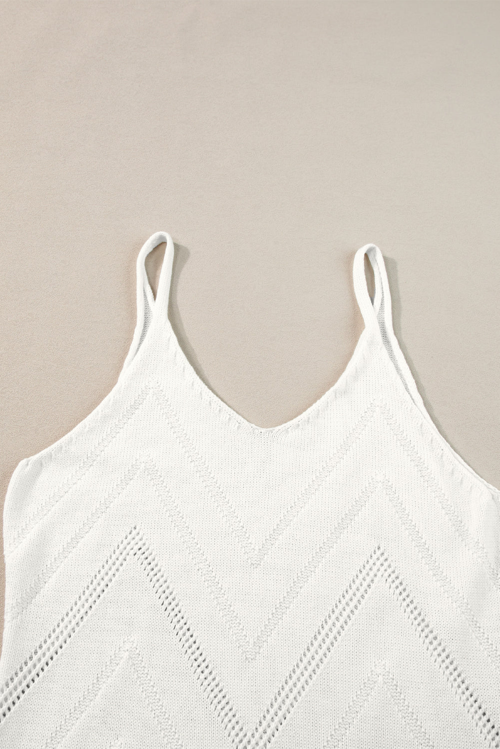 White Chevron Pointelle Knit Spaghetti Straps Sweater Vest