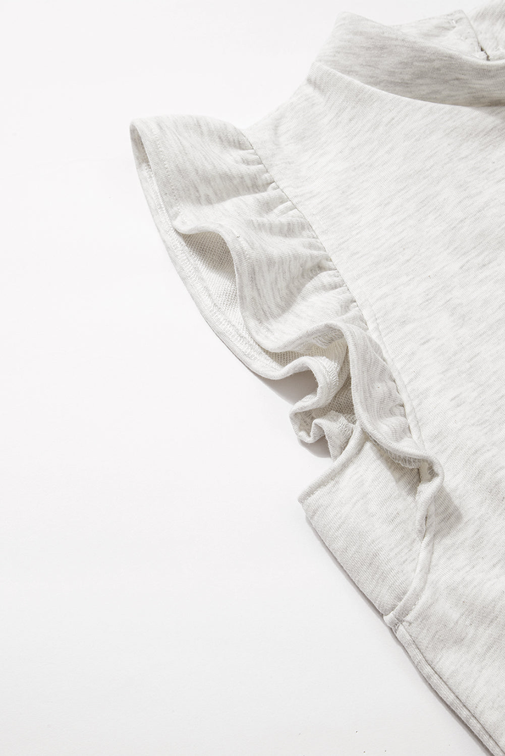 - Crew neck, flutter sleeve and ruffled hemline finished