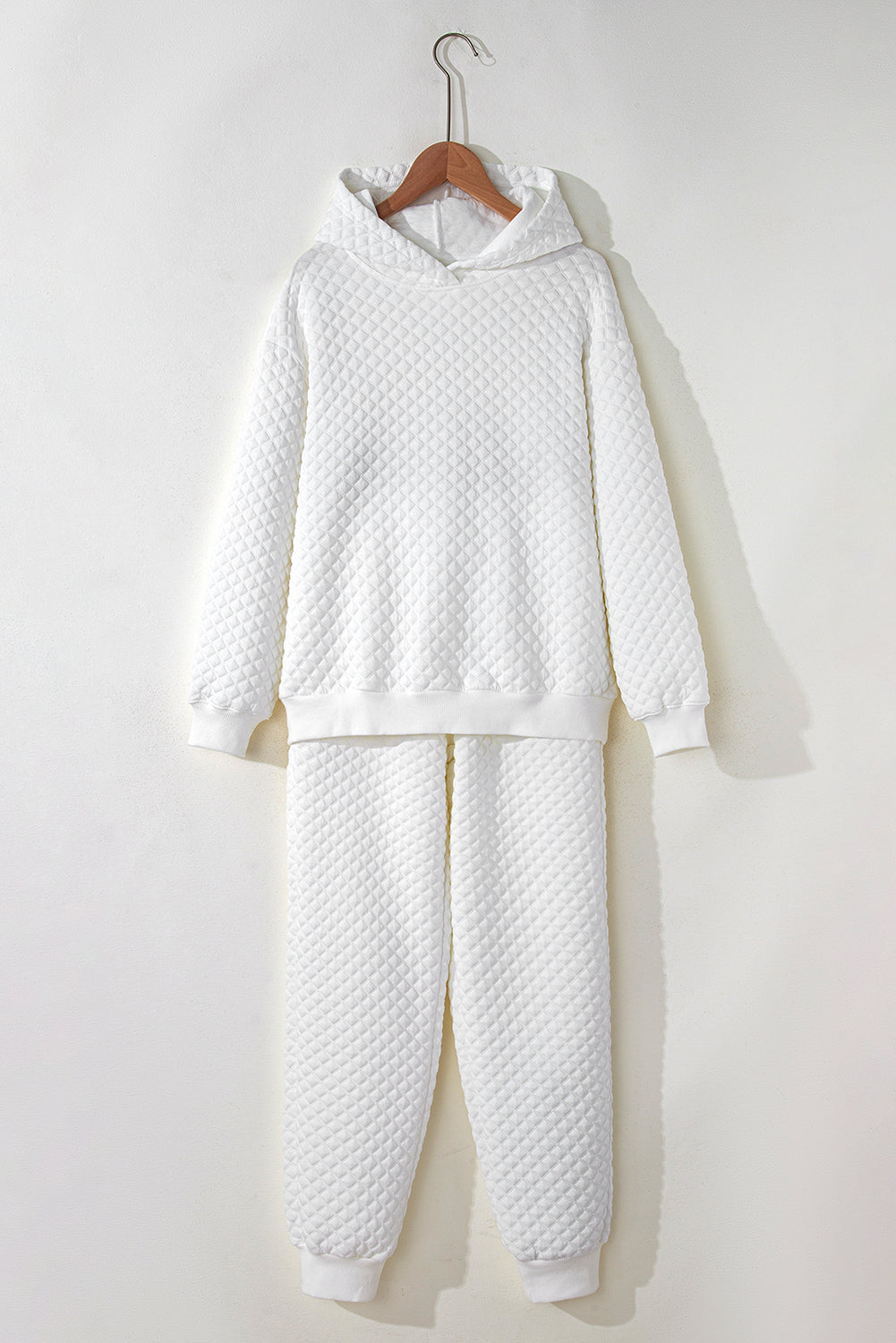 White Quilted Hoodie and Sweatpants Two Piece Set