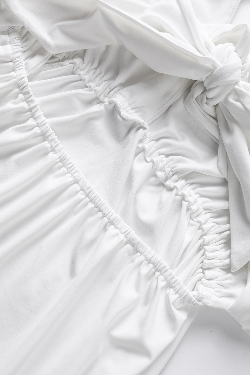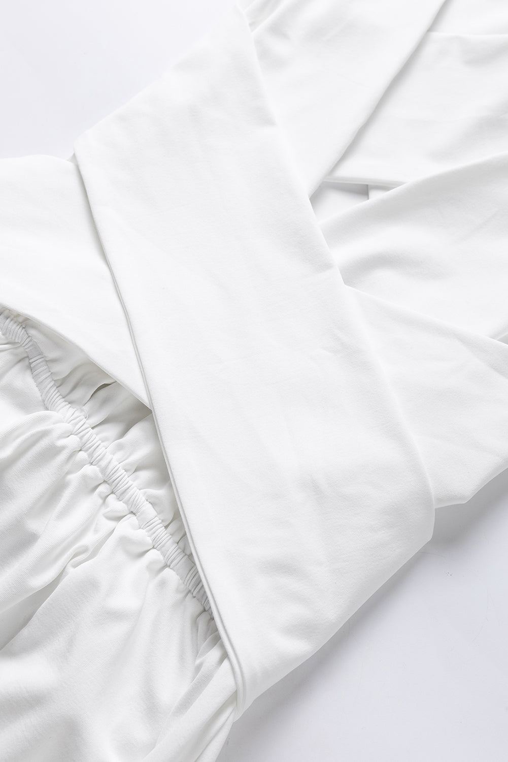 White Sleeveless Ruched High Split Cutout Back Maxi Dress