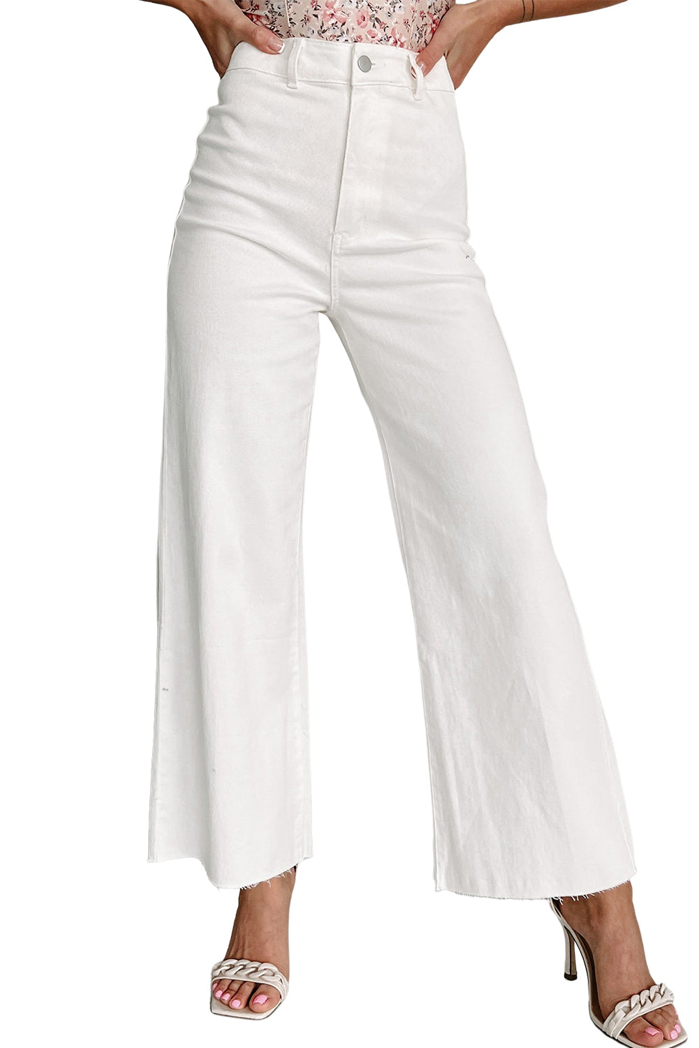 - These Solid Raw Hem Wide Leg Crop Jeans are a trendy addition to wardrobes