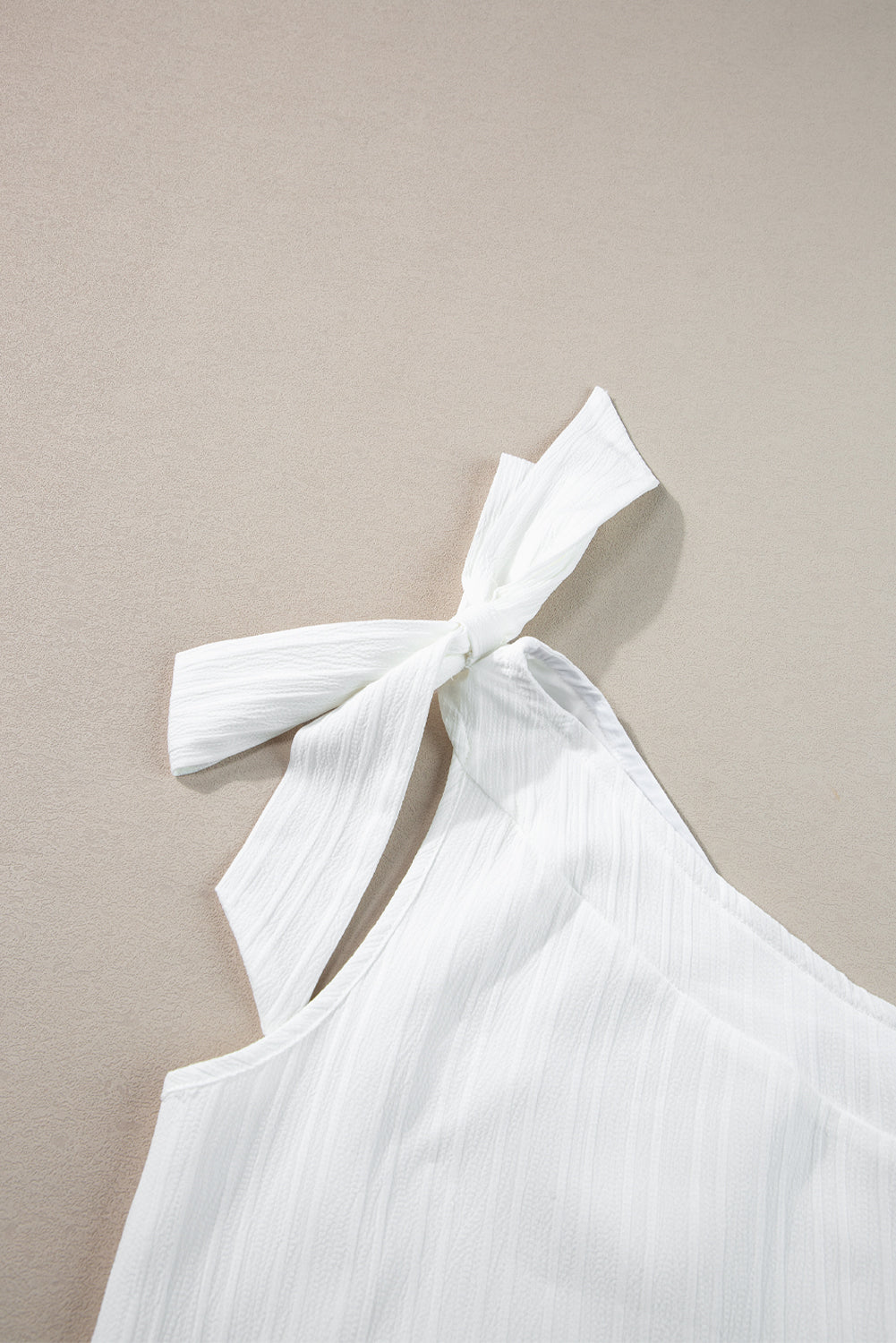 White Textured Bowknot One Shoulder Tank Top