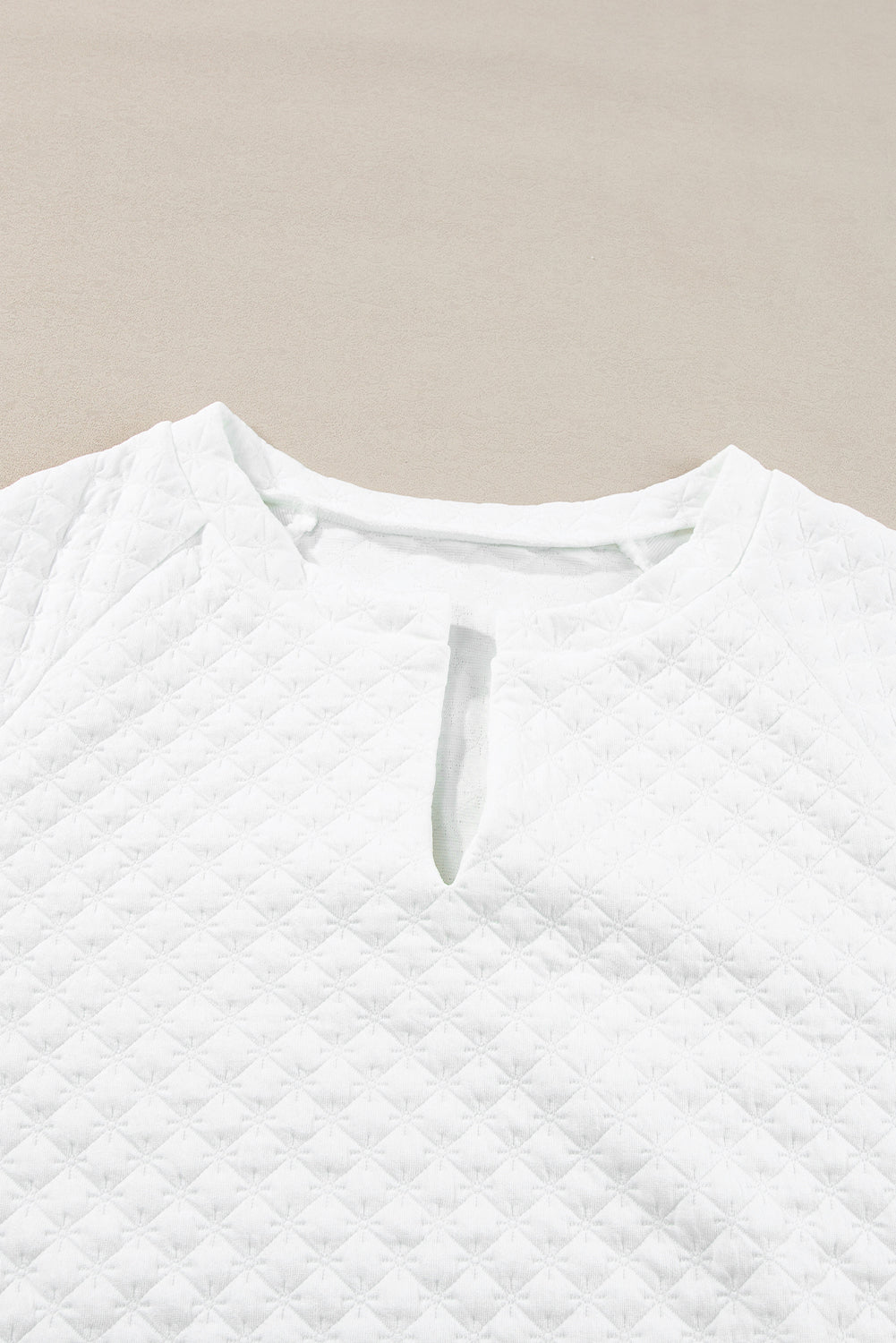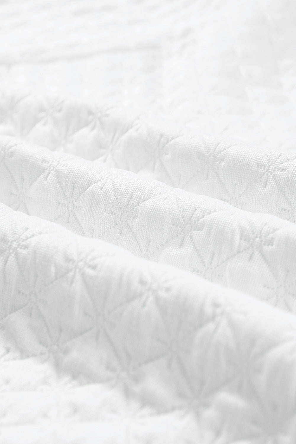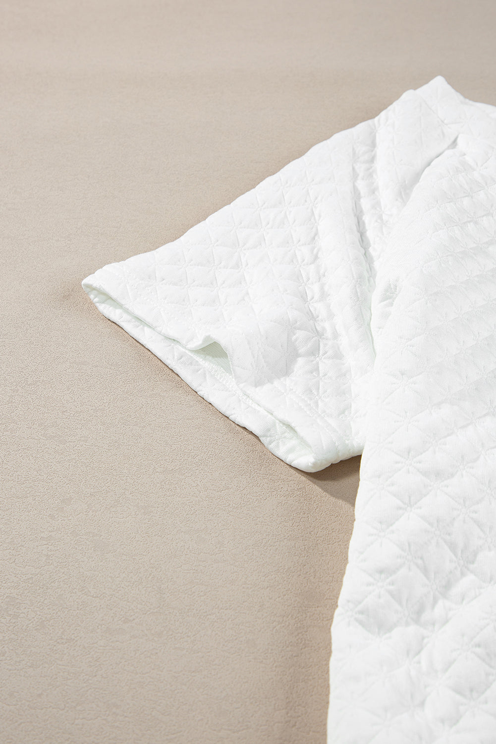 White Textured Notch V Neck Drawstring Shorts Set