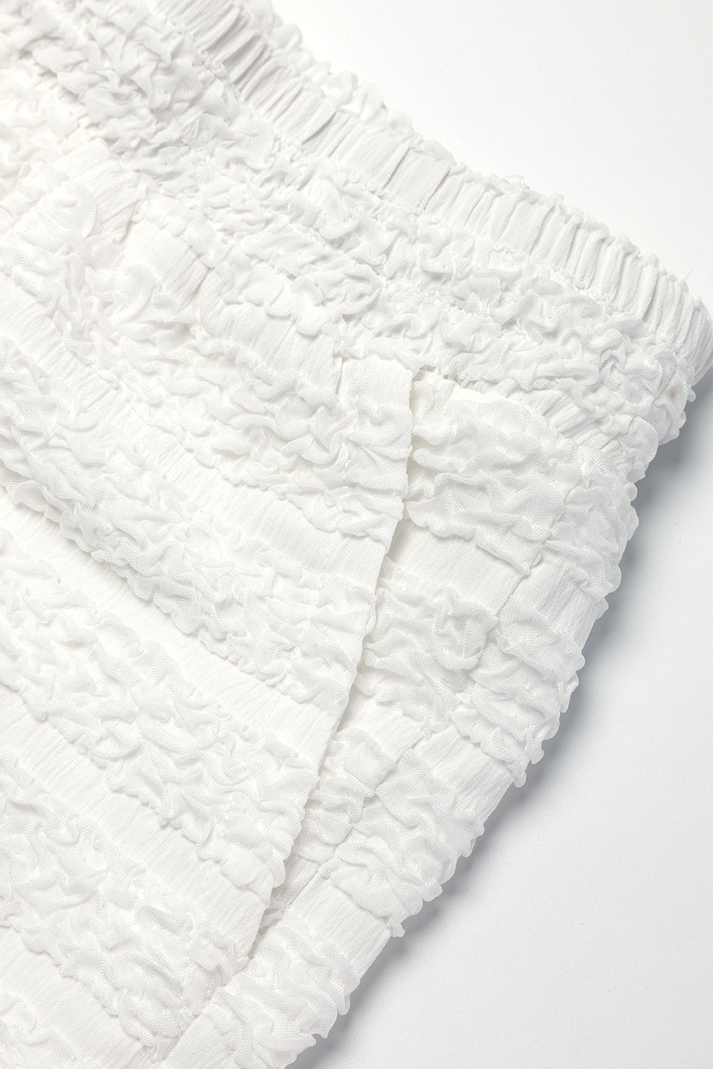 White Textured Stripes Short Sleeve Shirts and Shorts Set