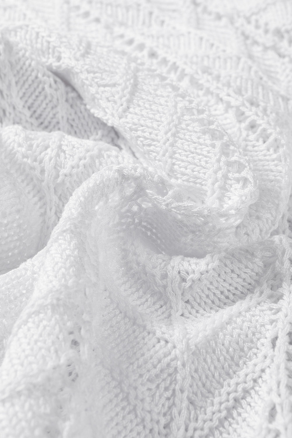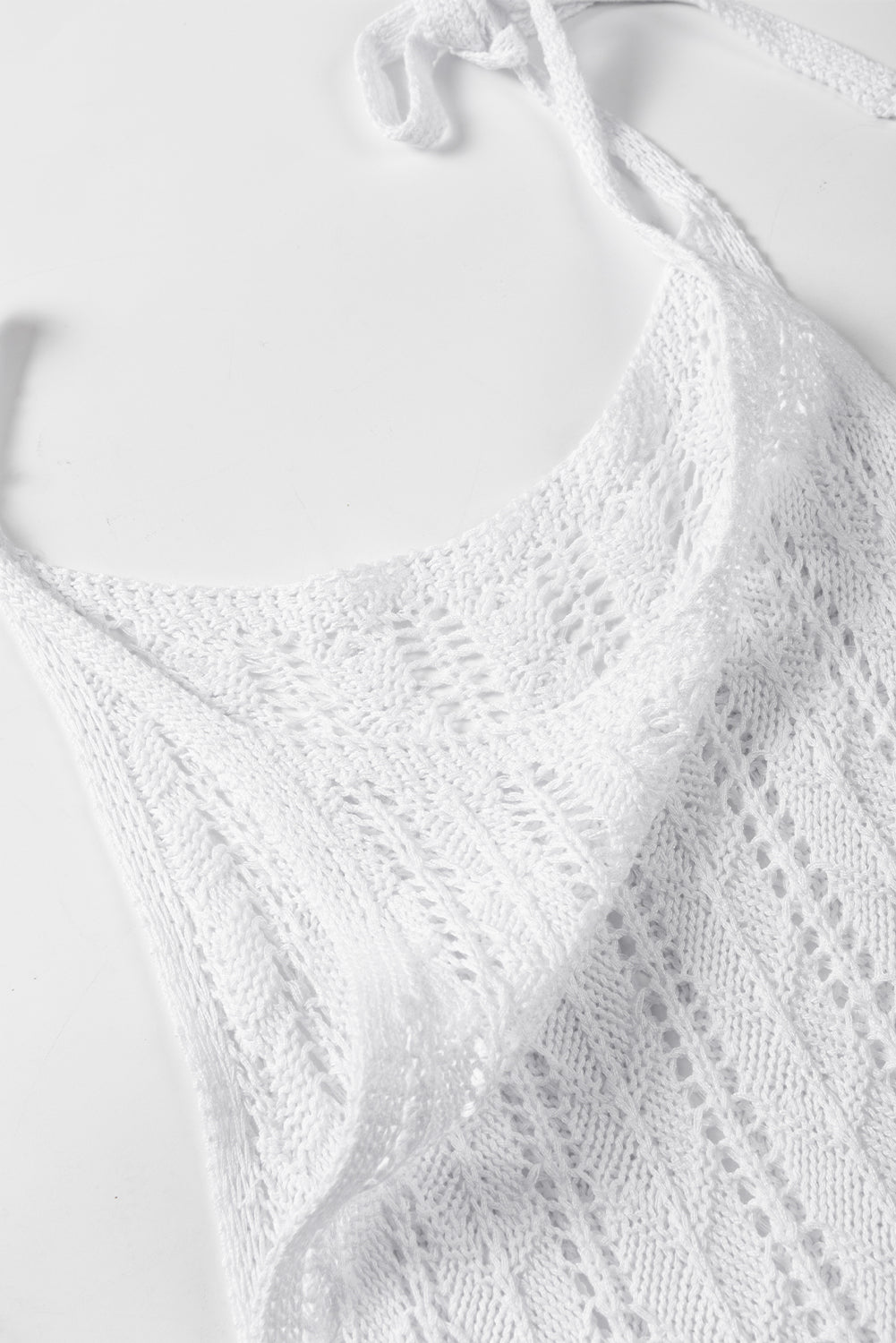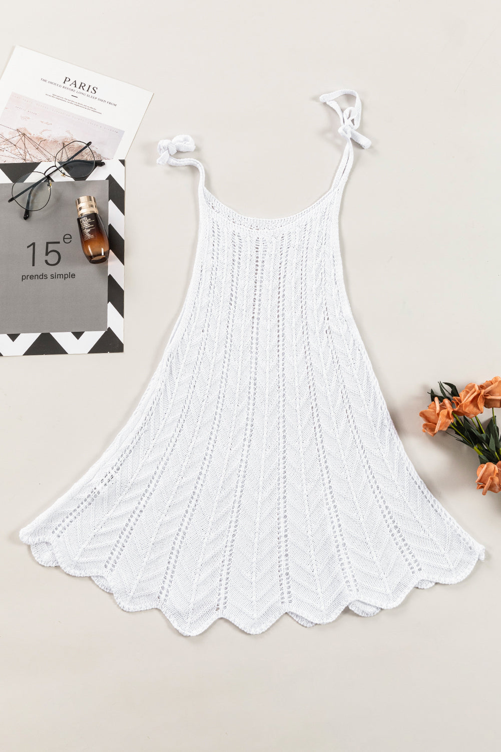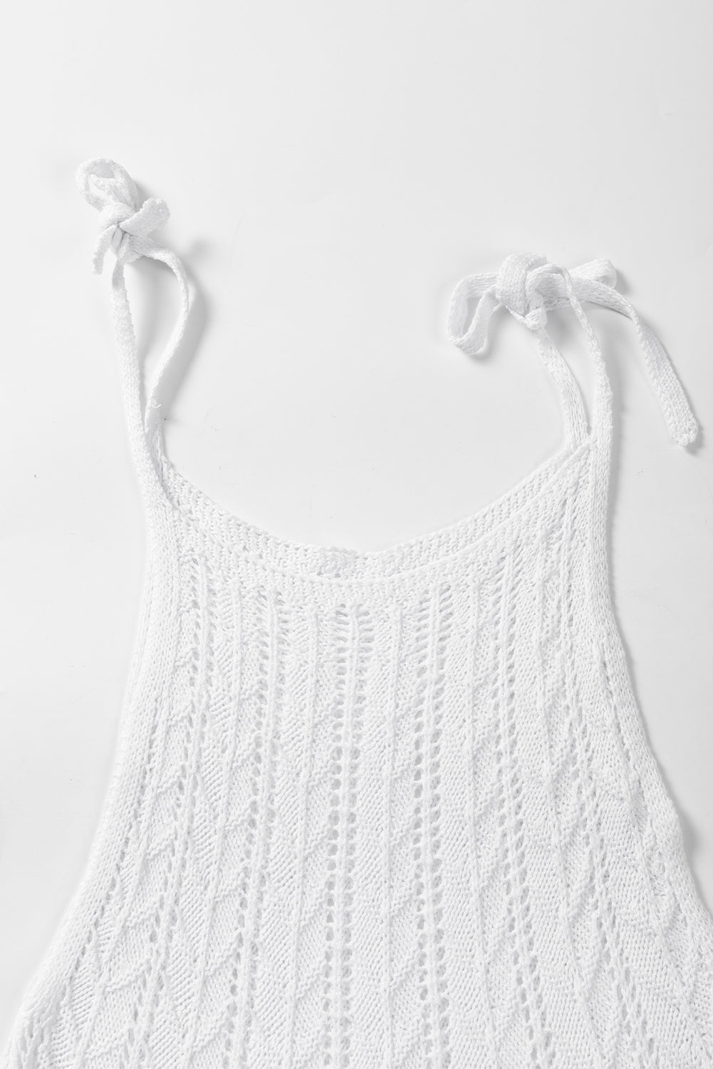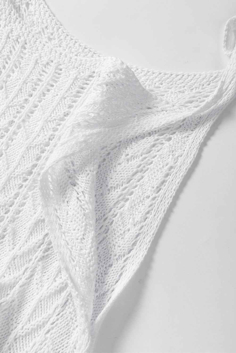 White Tie Straps Wave Stripes Textured Eyelet Knitted Vest